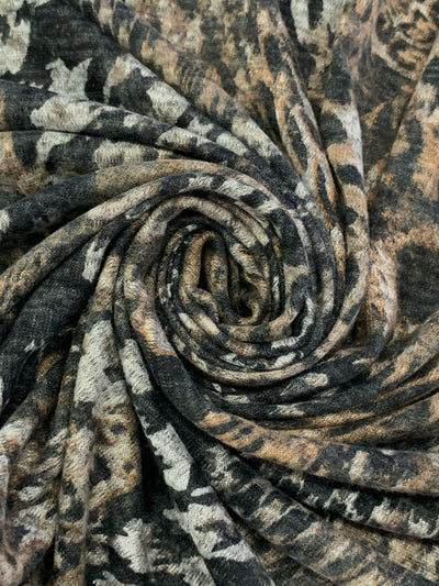 Black/Wheat/Chocolate Polyester/Lycra Animal Print Brushed Sweater Knit 58W