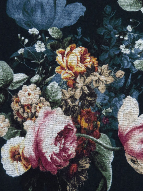 Midnight Blue/Dark Goldenrod/Deep Moss Green/Multi Polyester/Lycra Floral Print Sweater Knit 56W
