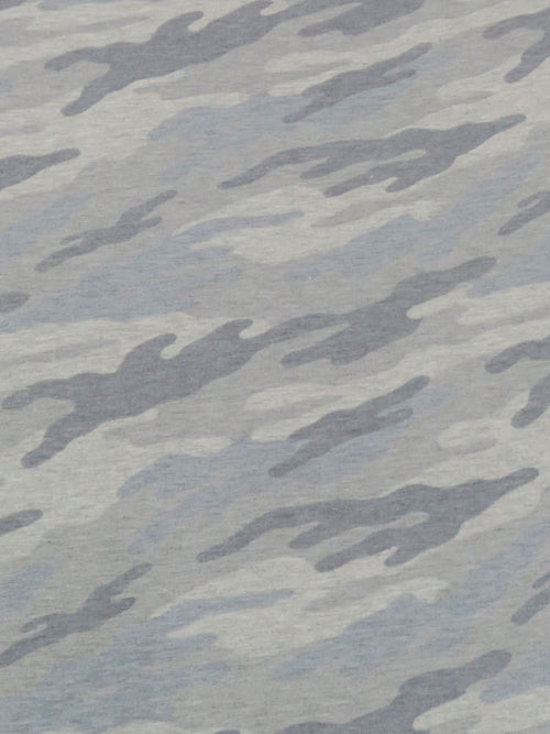Pewter Gray/Tungsten Gray/Muted Misty Blue/Multi Polyester/Lycra Heathered Camouflage Print French Terry Knit 60W