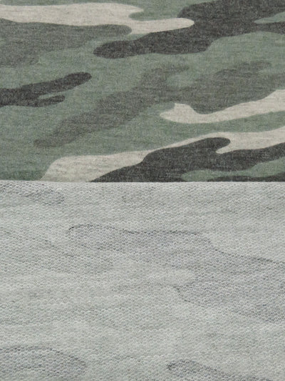 Kale Green/Wet Cement/Muted Black/Multi Polyester/Lycra Heathered Camouflage Print French Terry Knit 60W