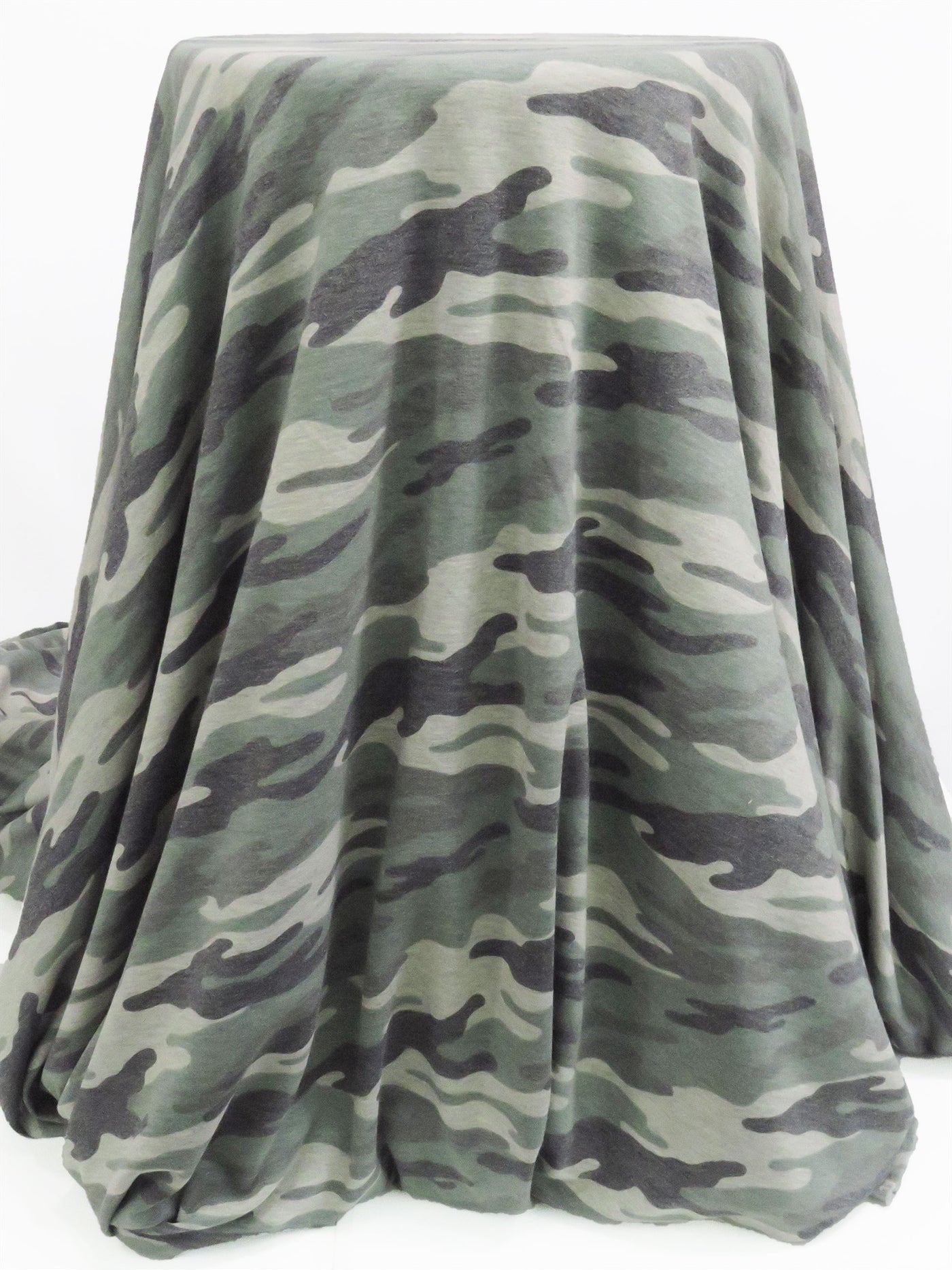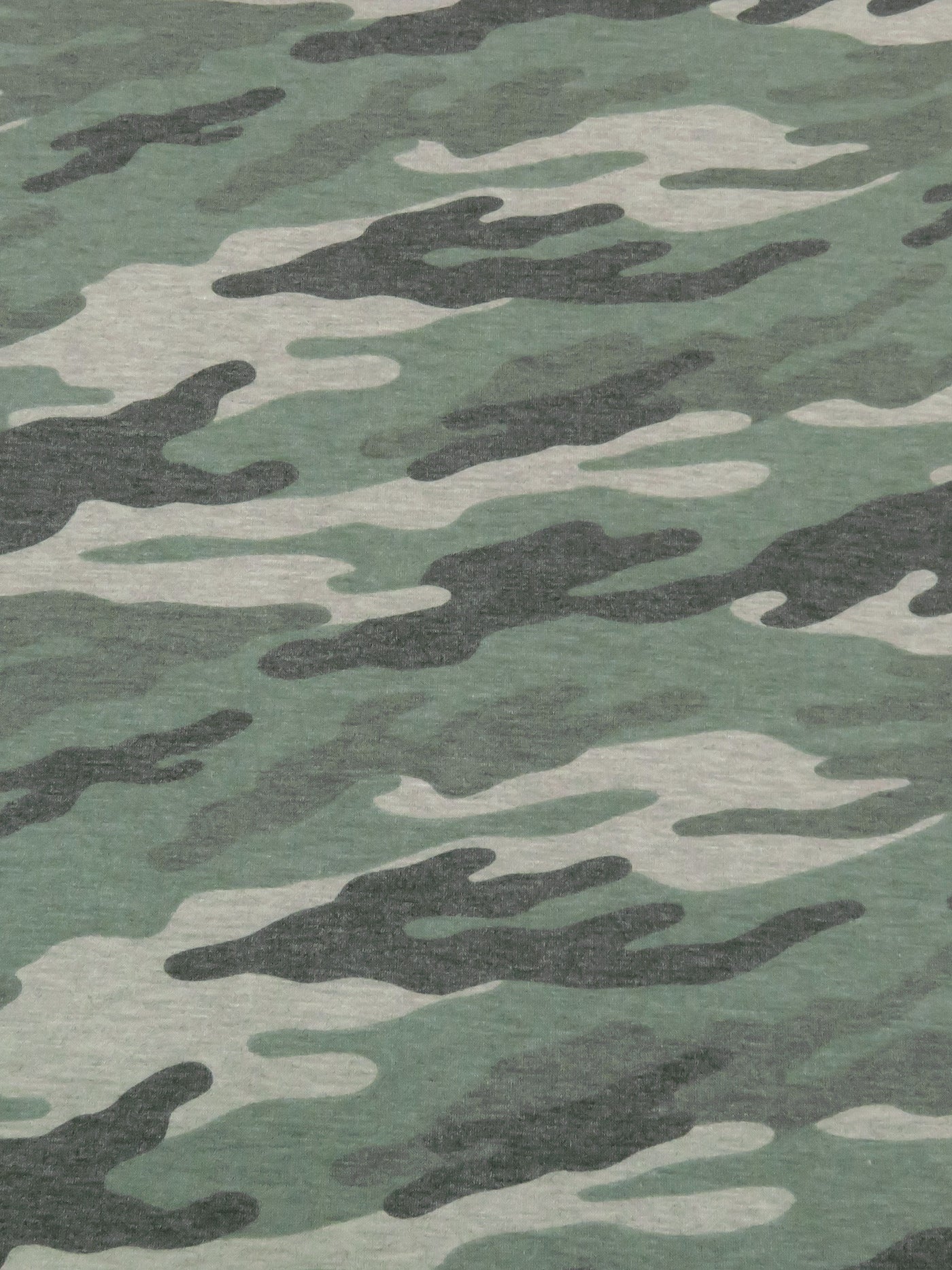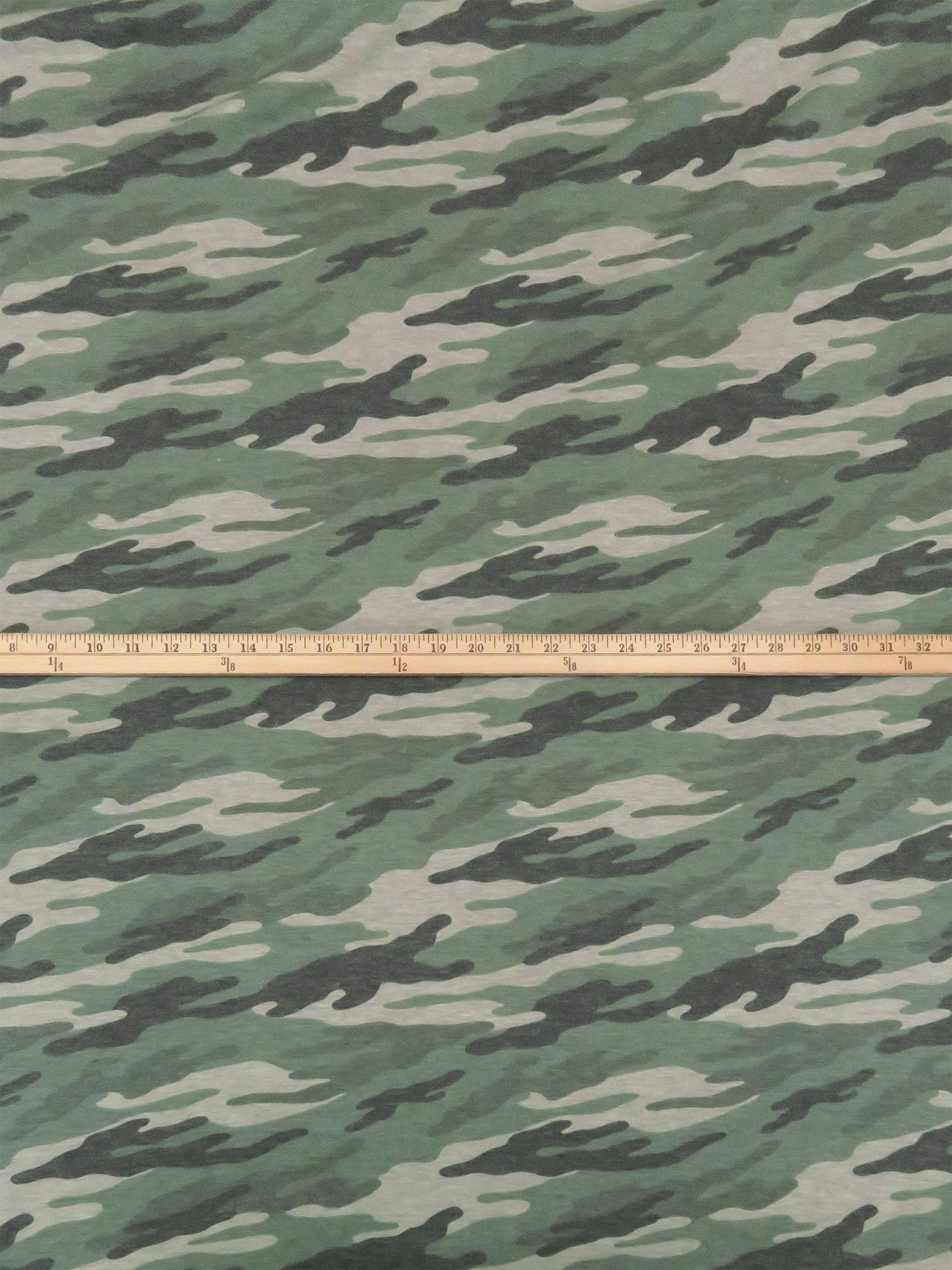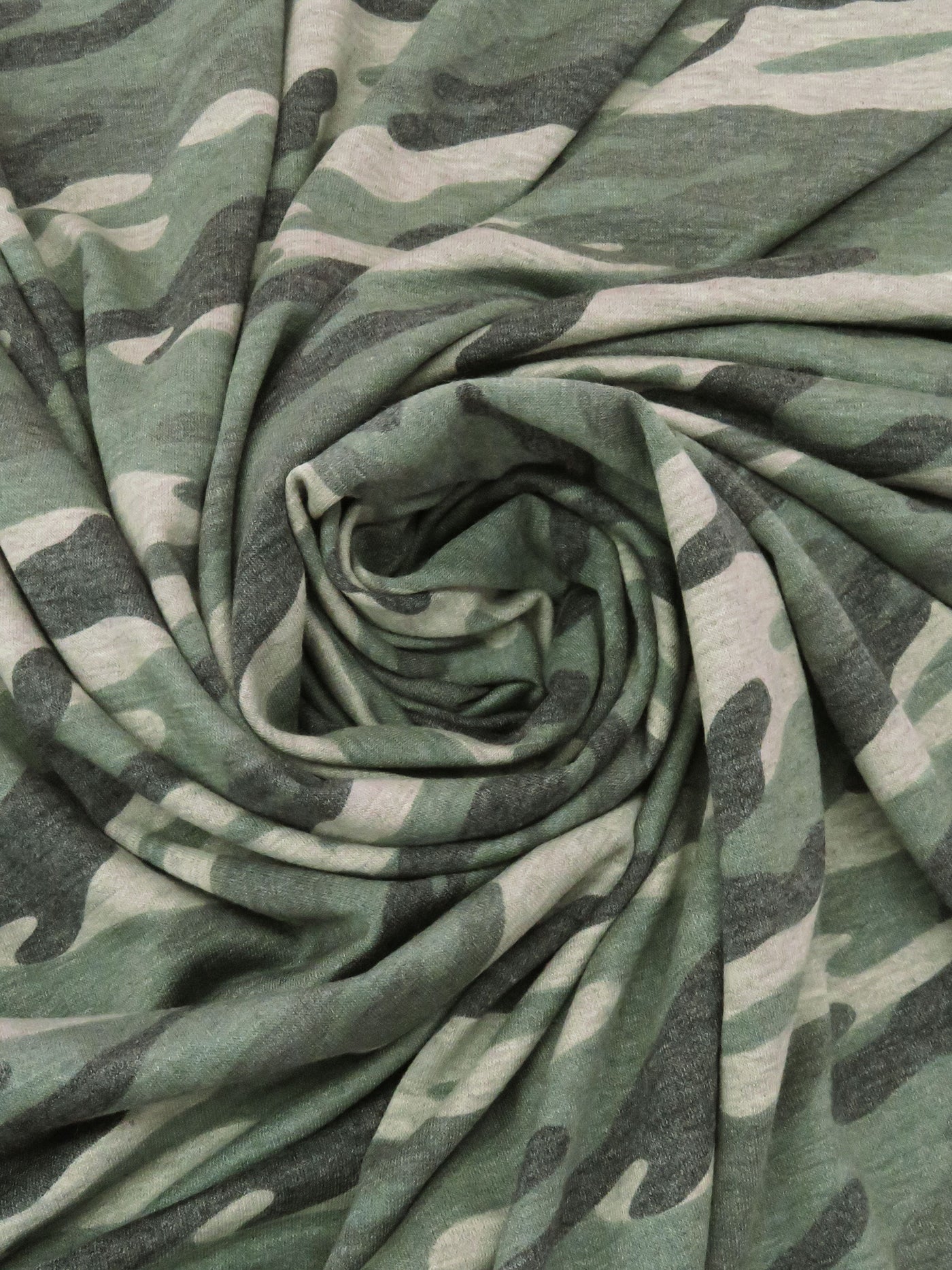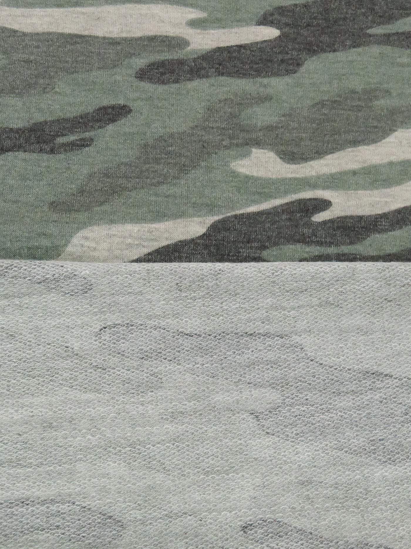 Kale Green/Wet Cement/Muted Black/Multi Polyester/Lycra Heathered Camouflage Print French Terry Knit 60W
