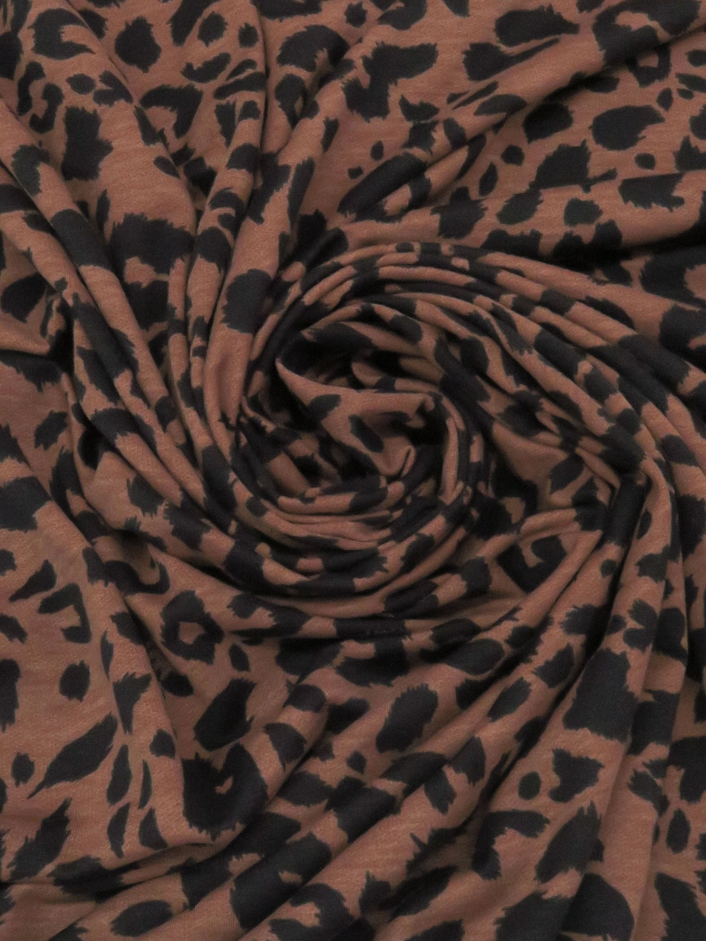 Terra Cotta Brown/Black Polyester/Lycra Animal Print French Terry Knit 57W