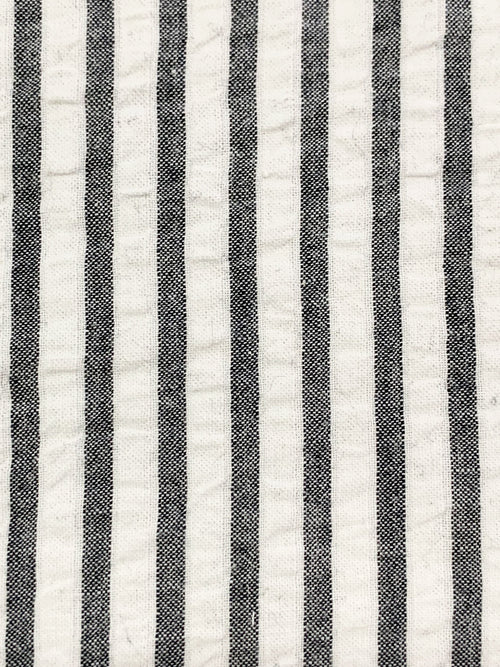 Warm White/Black 100% Cotton Vertical Stripe Weave Seersucker 54W