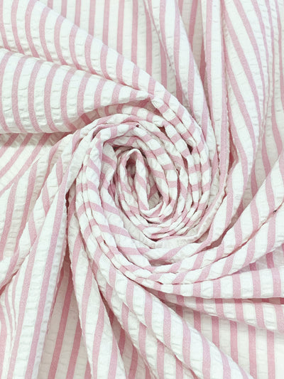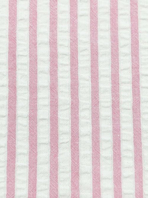 White/Cameo Pink 100% Cotton Vertical Stripe Weave Seersucker 56W