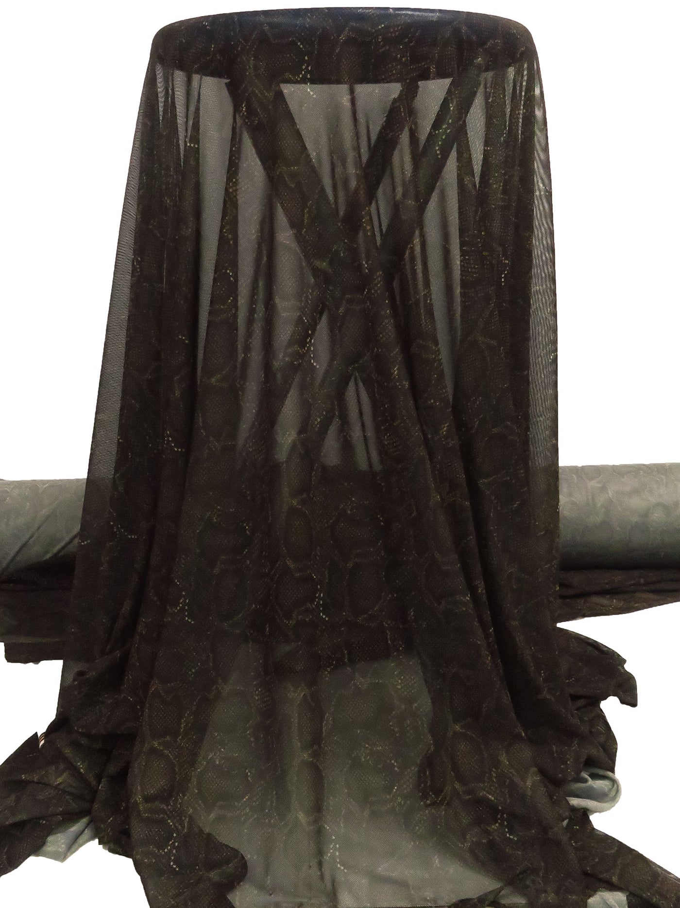 Chocolate/Black/White Nylon/Lycra Snakeskin Print Mesh Knit - NY Designer - 50W