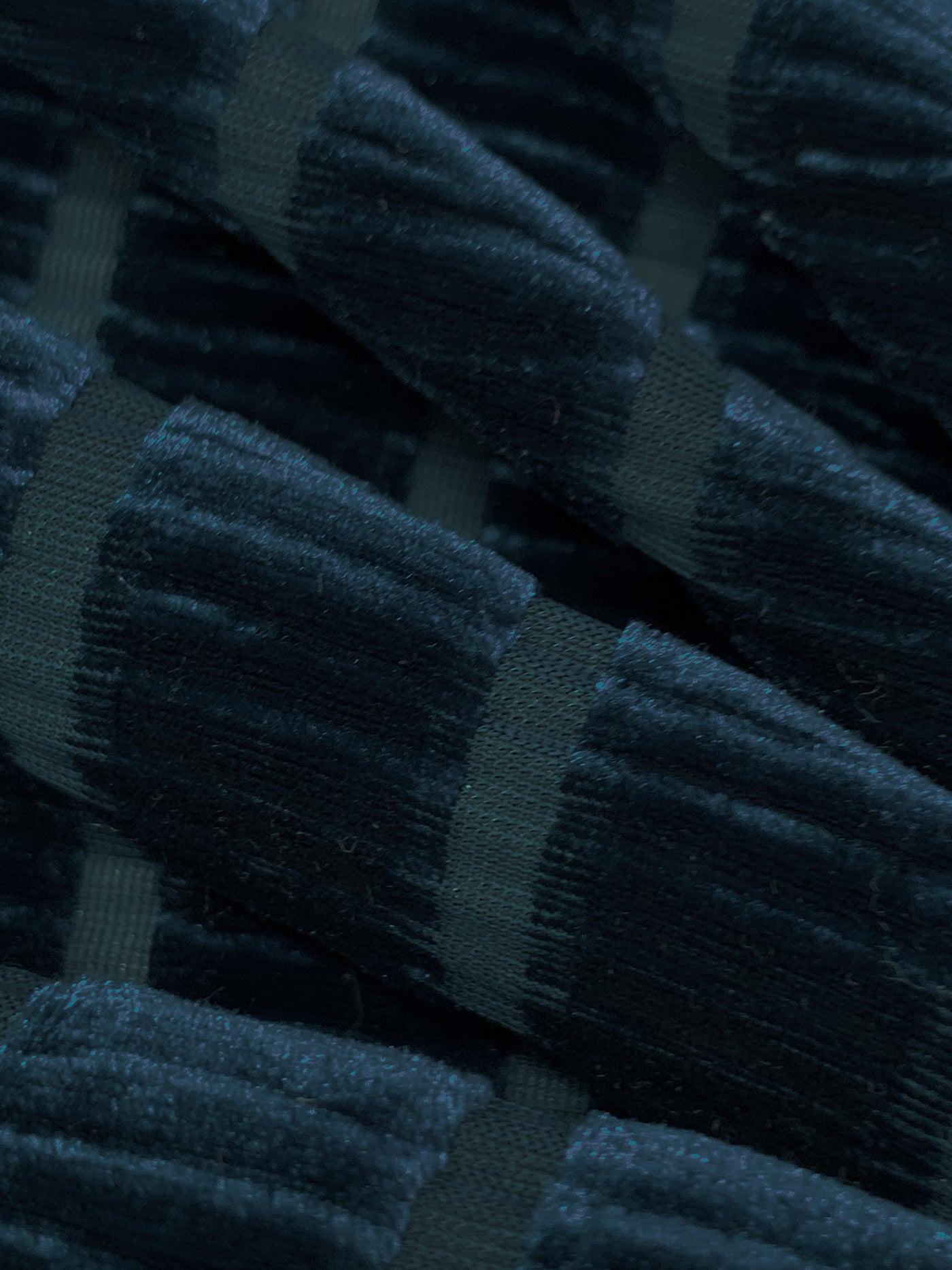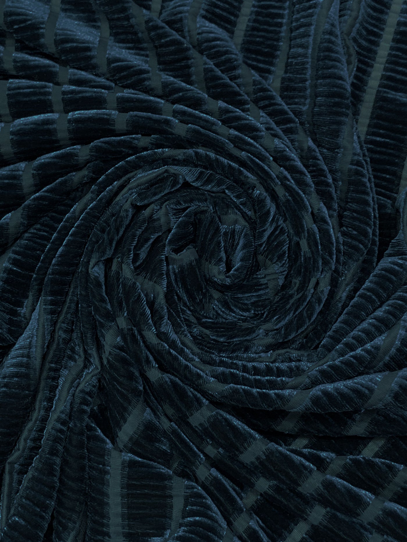 Dark Lapis Blue Polyester/Lycra Vertical Burnout Stripe Stretch Velvet Knit 54W