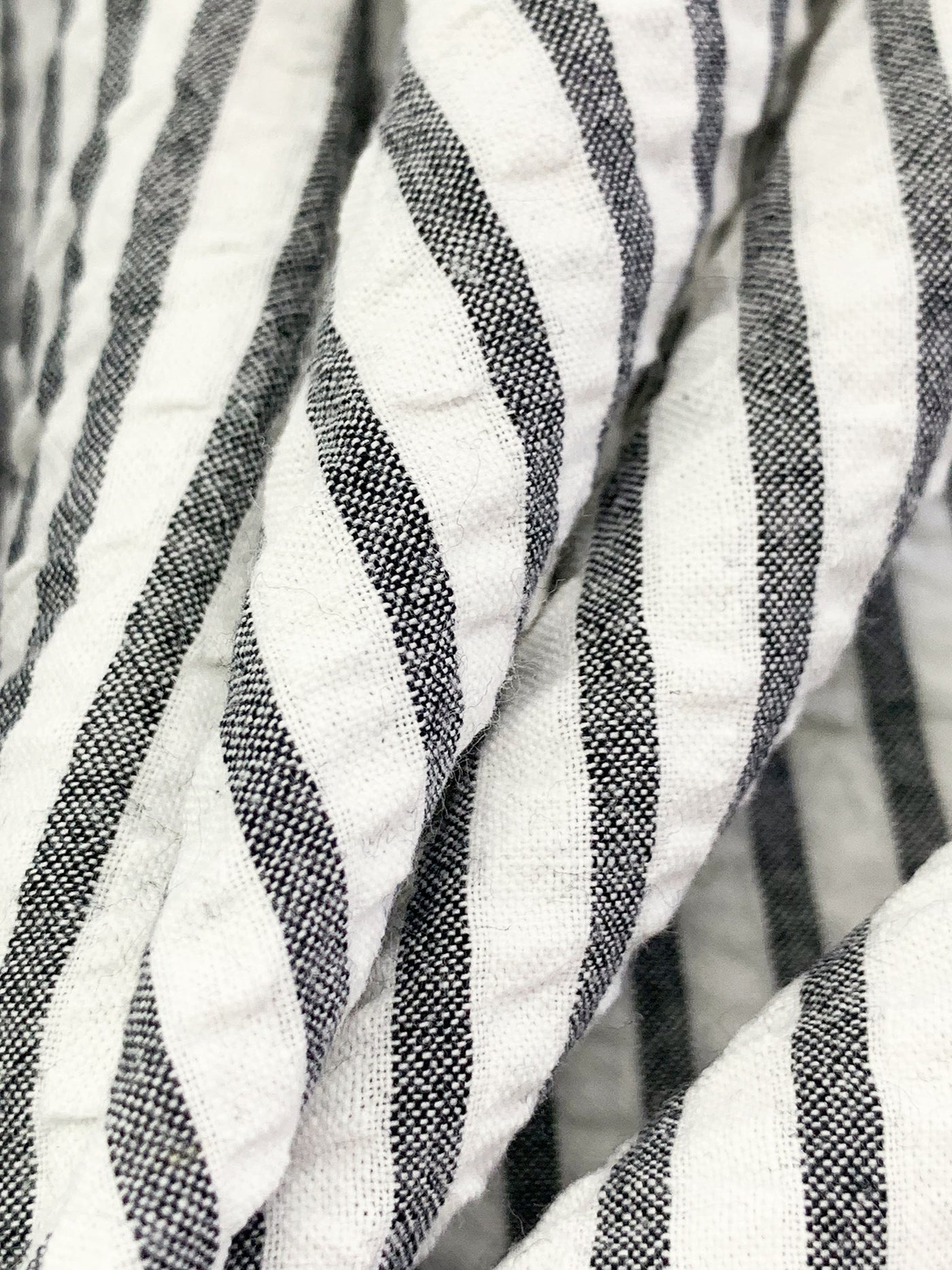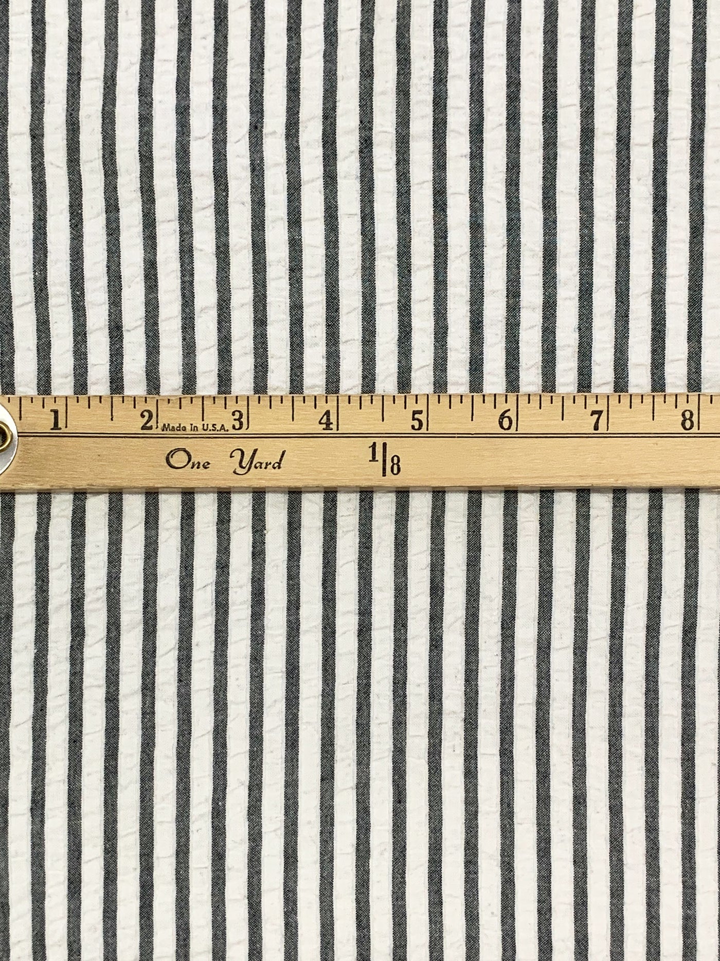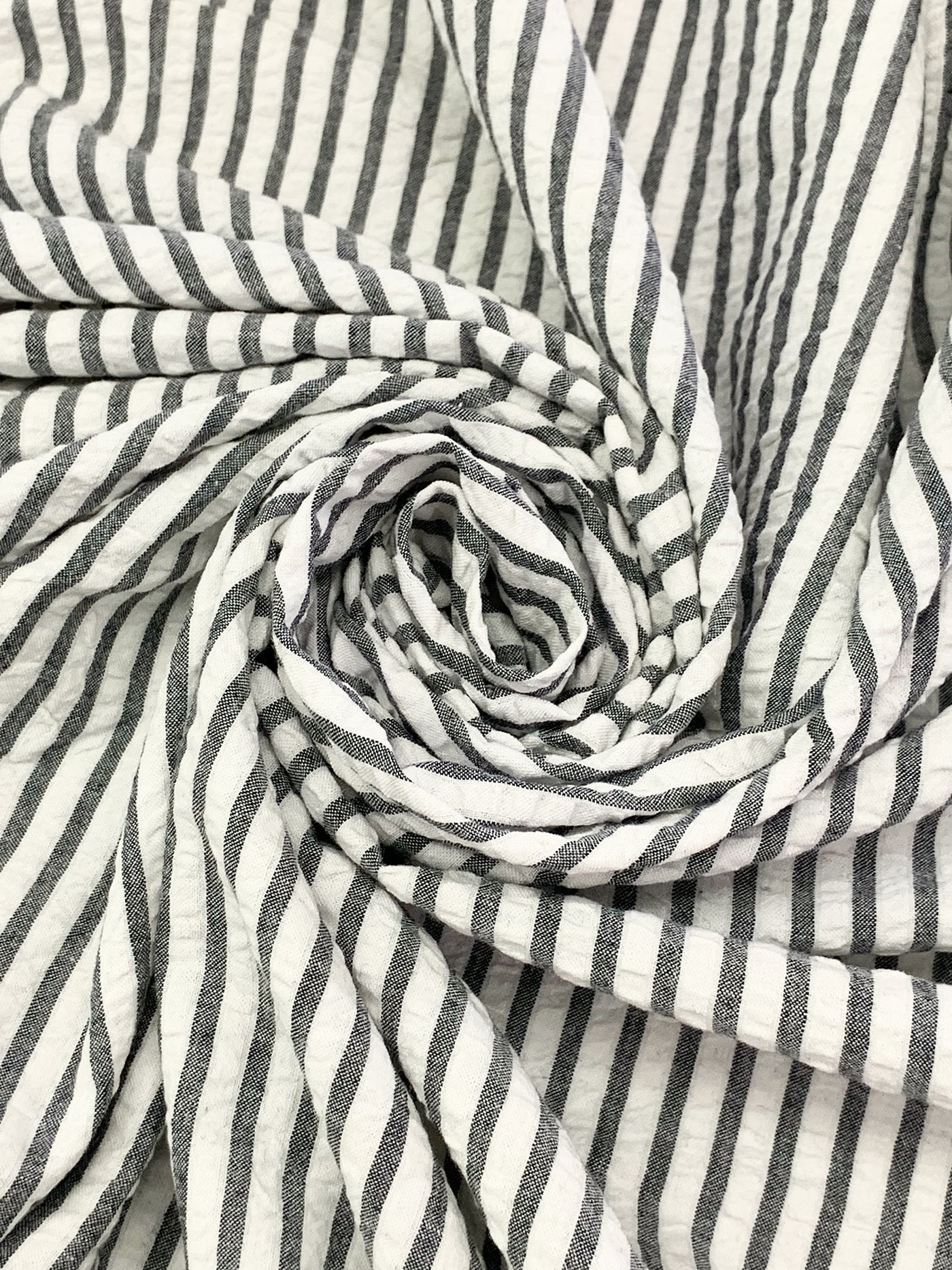 White/Deepest Charcoal Gray 100% Cotton Vertical Stripe Weave Seersucker 54W