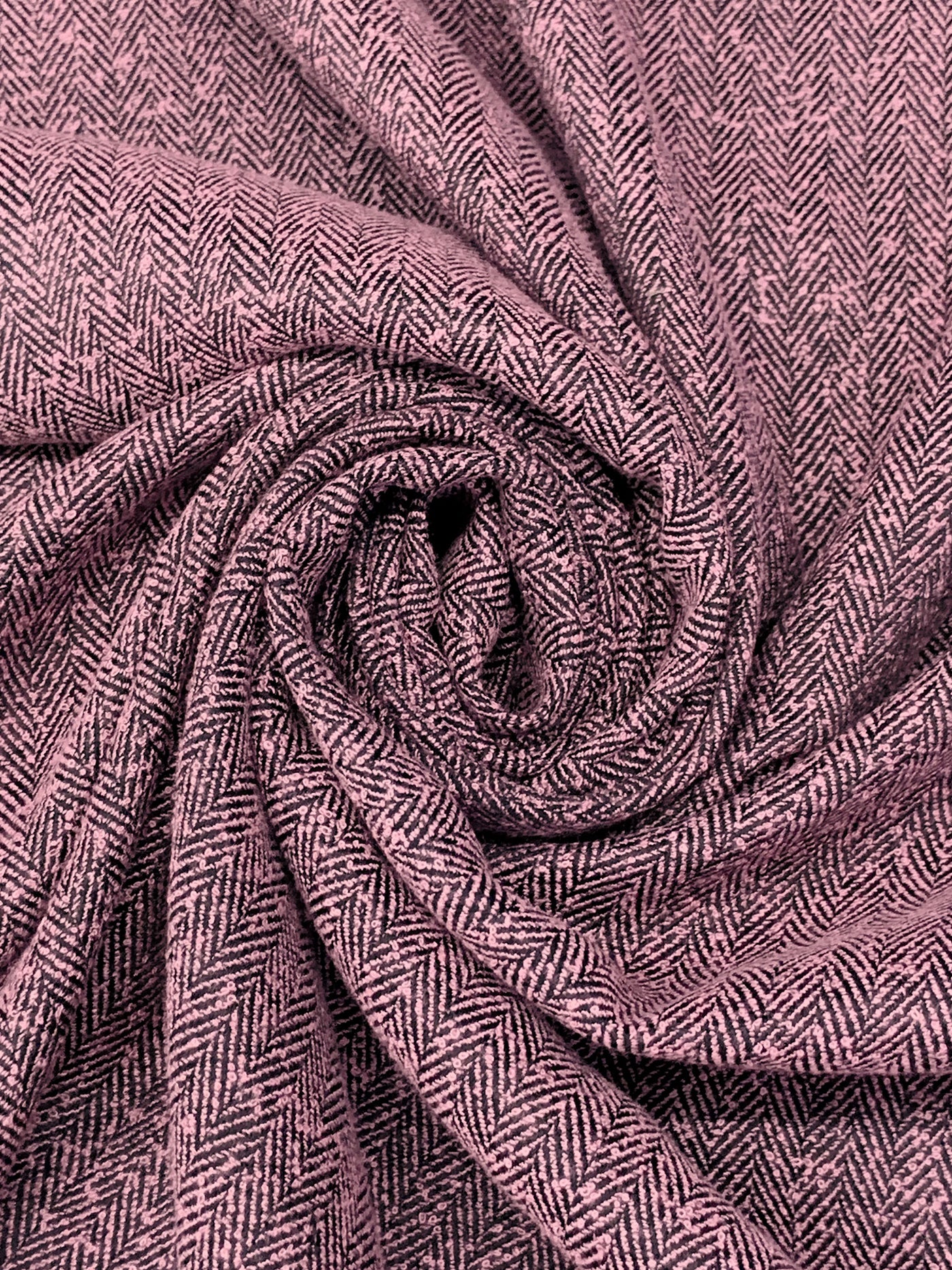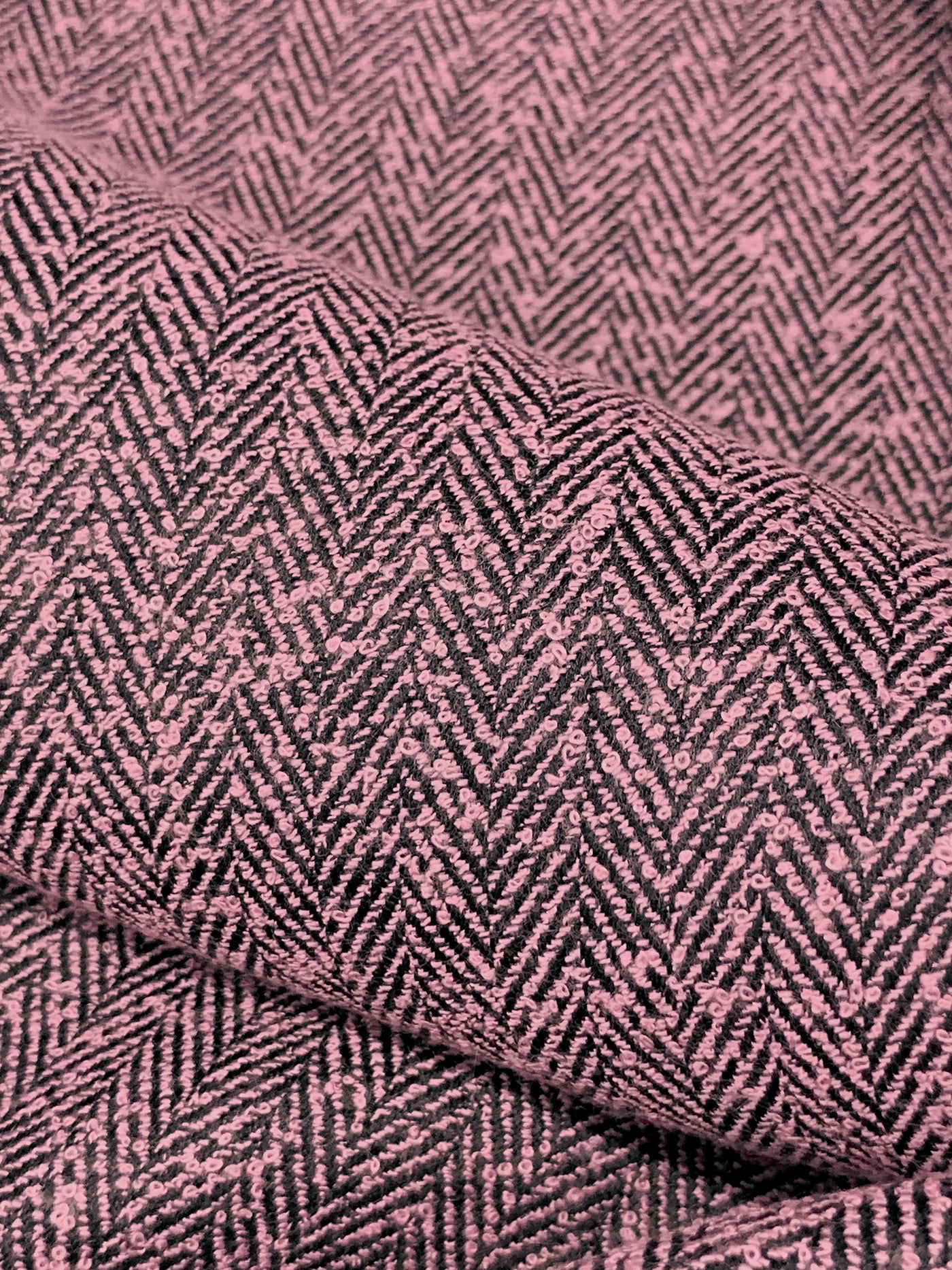 Amaranth Pink/Black 100% Polyester Tweed Herringbone Weave Suiting 58W