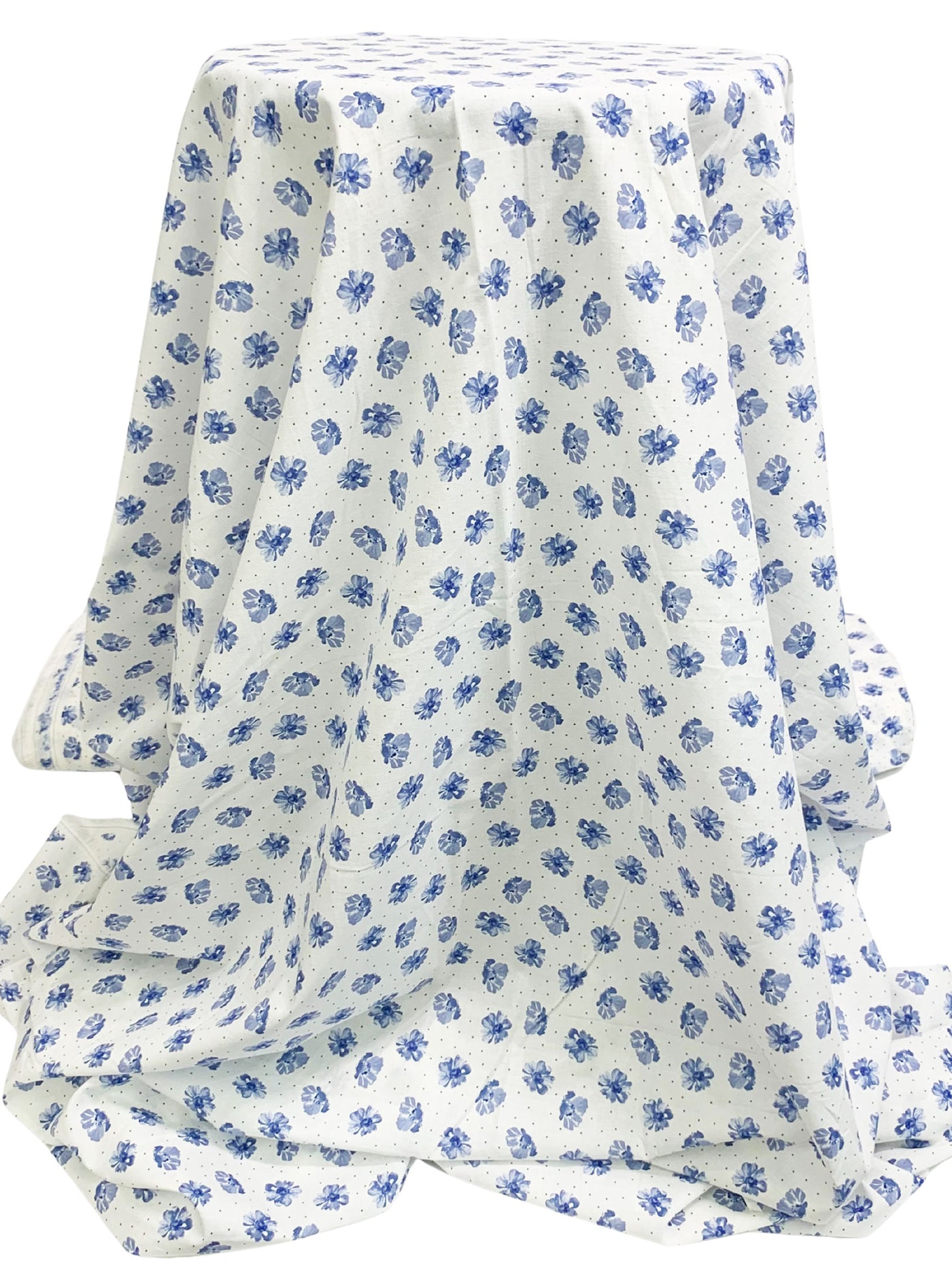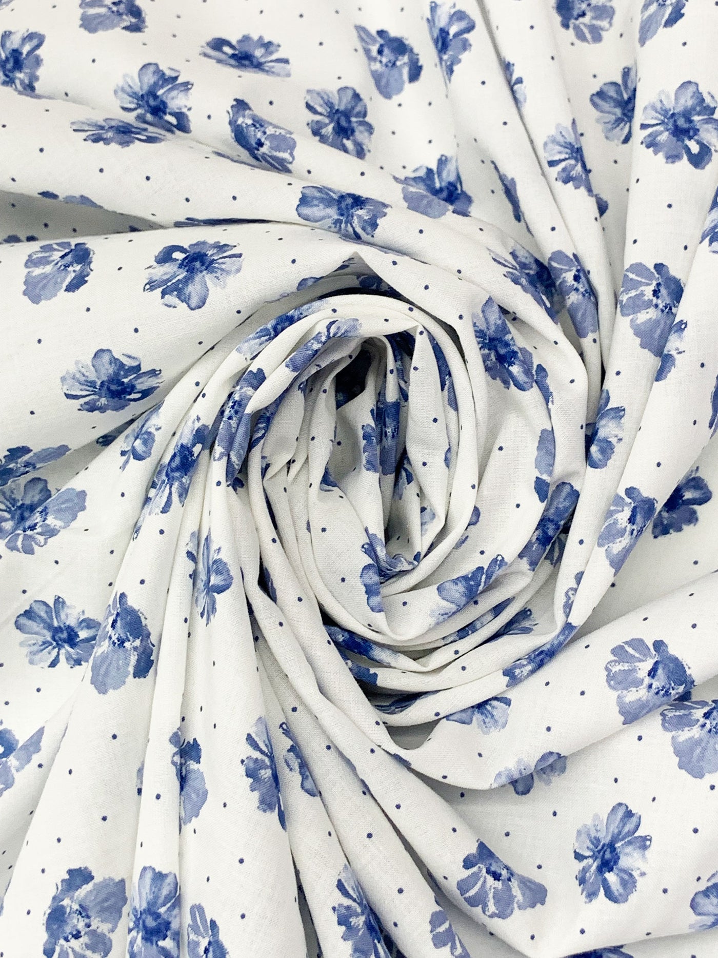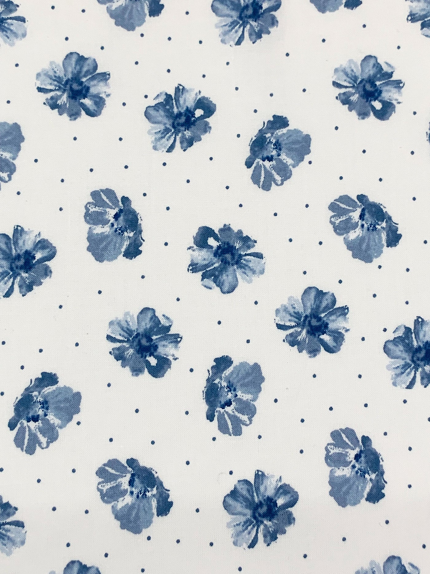 White/Admiral Blue 100% Cotton Floral Dot Print Voile 58W