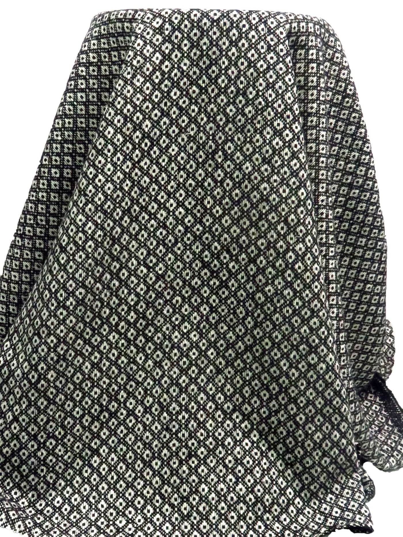 Black/Antique White Wool/Nylon Diamond Weave Coating - NY Designer - 58W