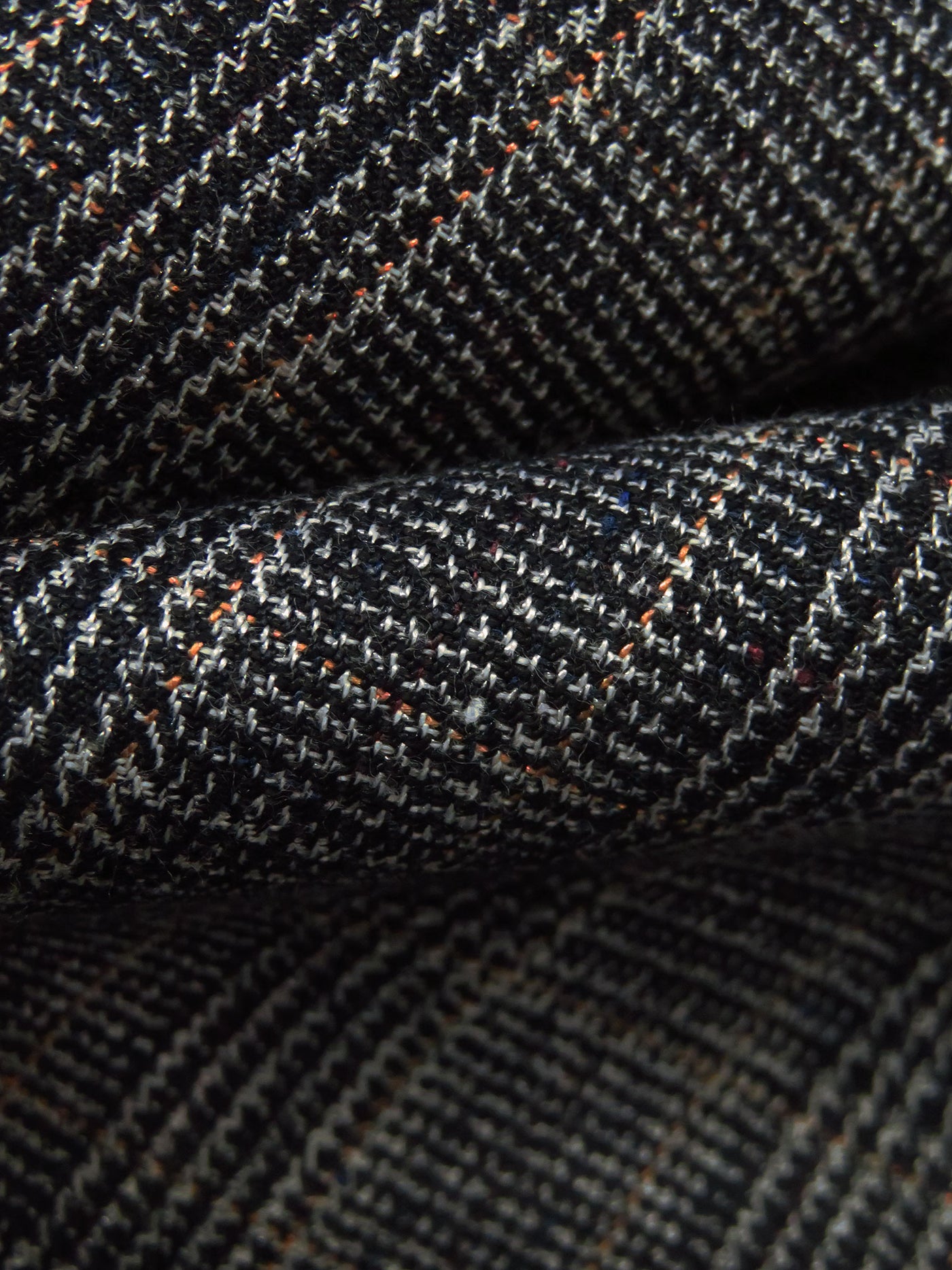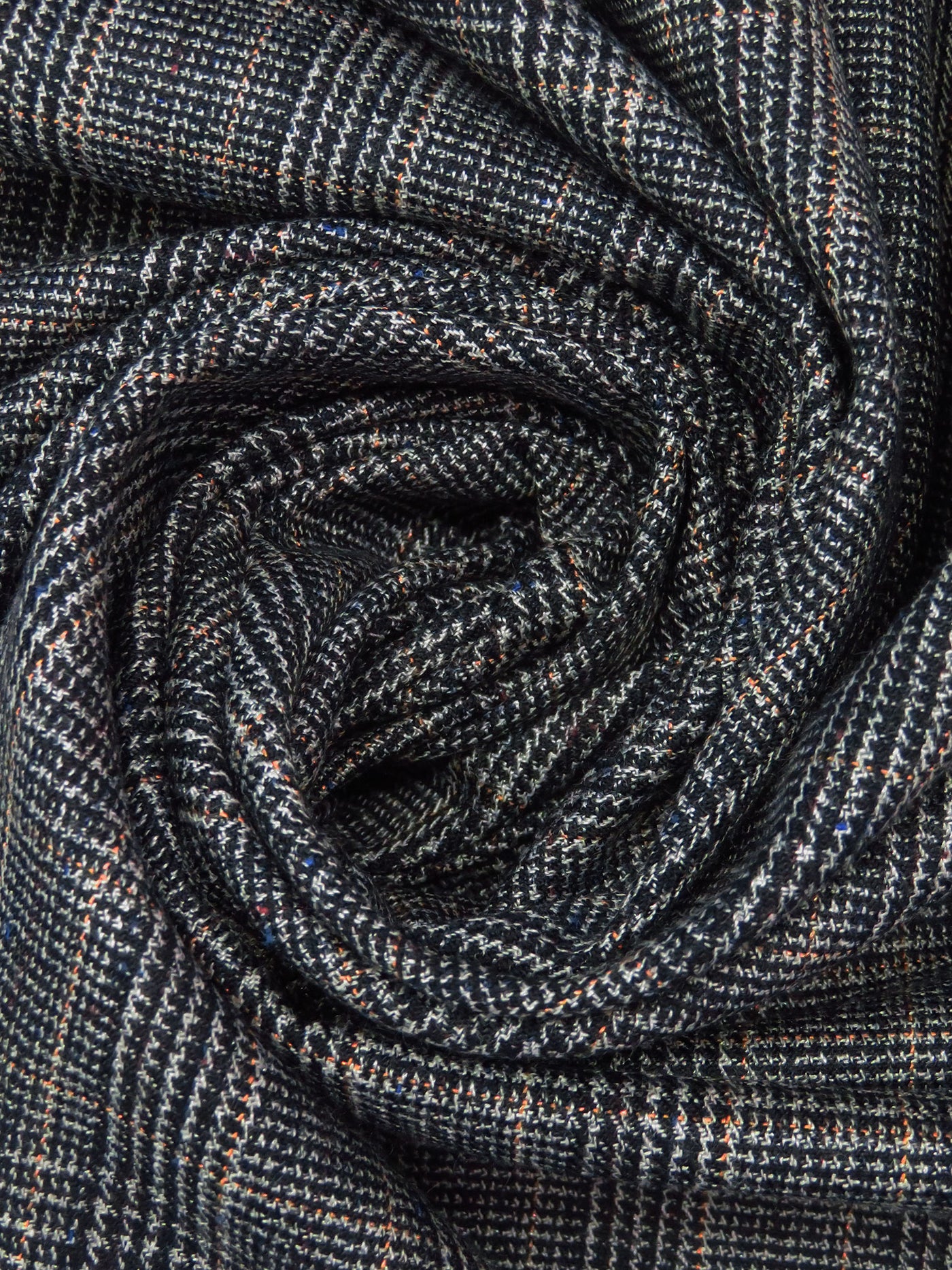 Black/Copper Rust/Dark Blue/Multi Polyester/Wool Glen Plaid Weave Suiting 60W