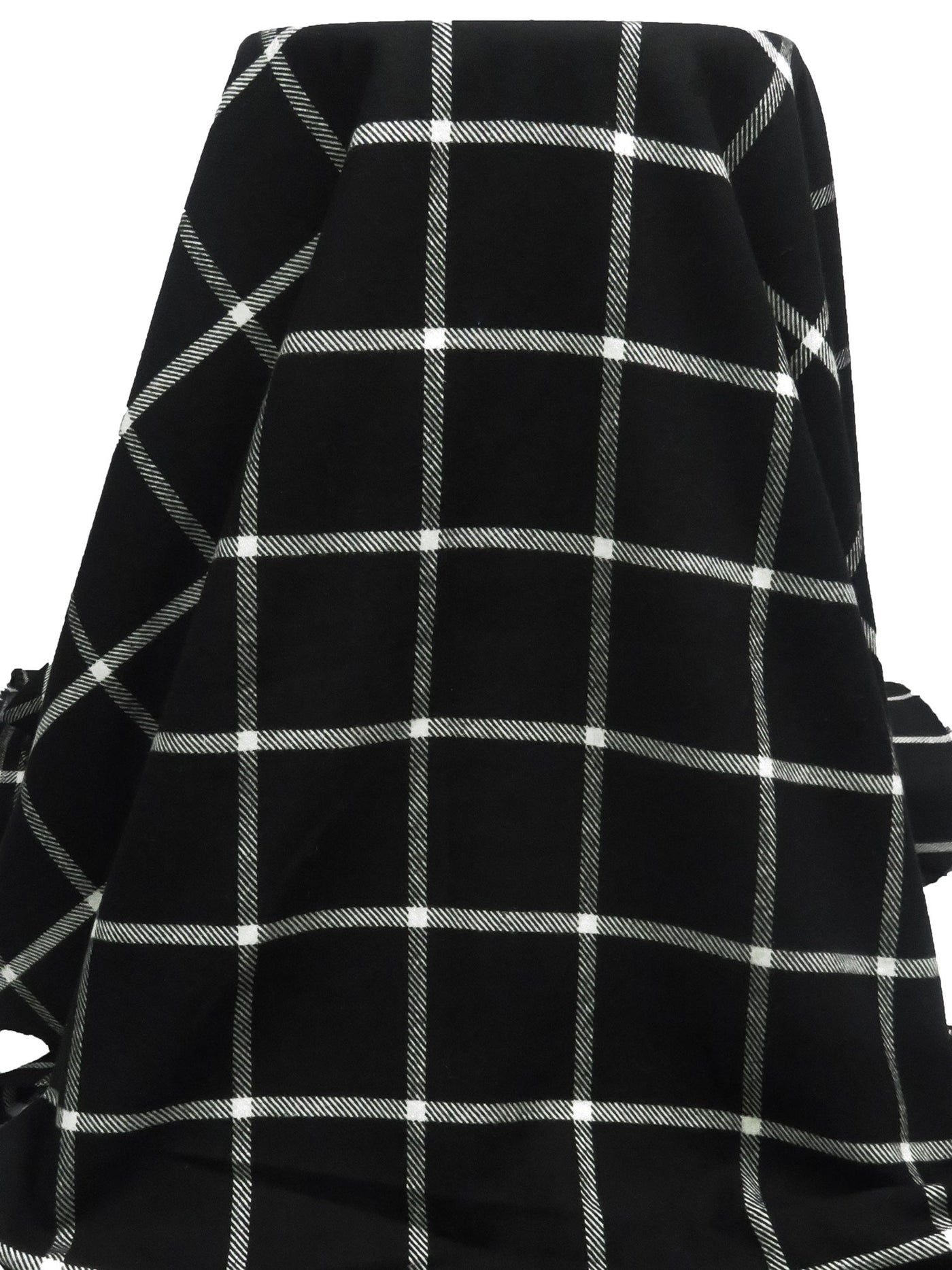 Black/White Wool/Polyester Plaid Weave Flannel Suiting - NY Designer - 56W