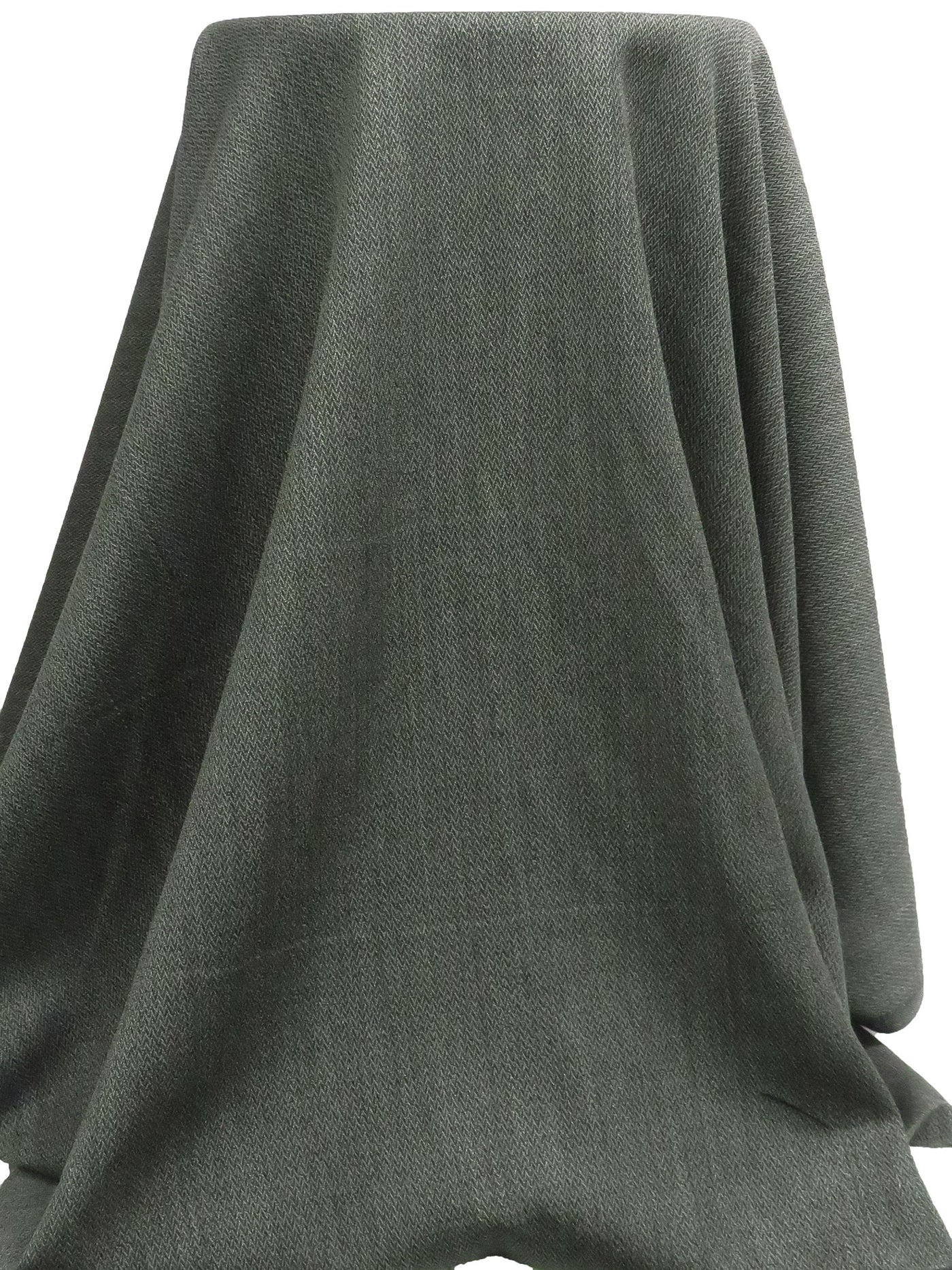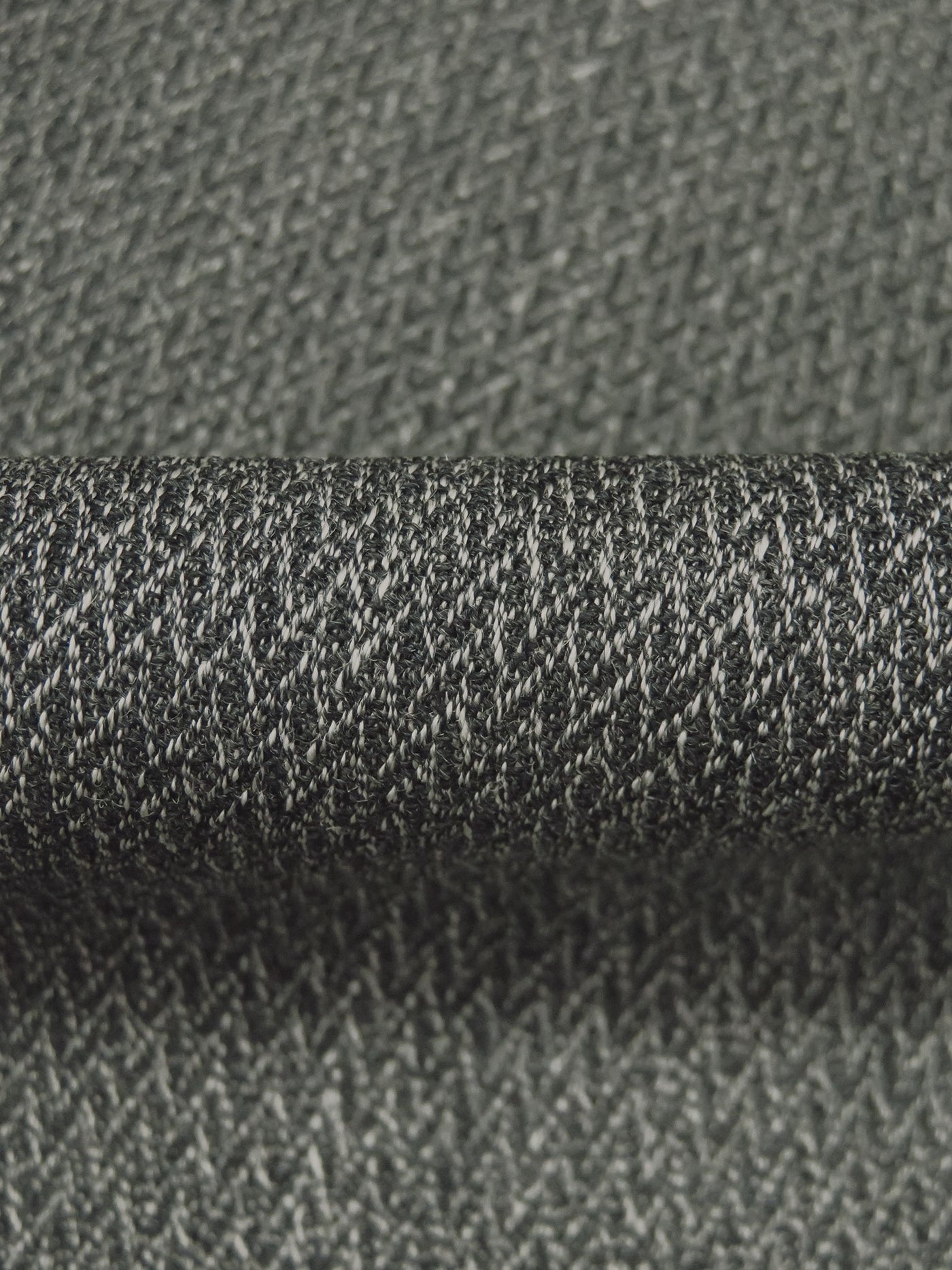 Dark Charcoal Gray/Beige 100% Worsted Wool Herringbone Weave Crepe Suiting 58W