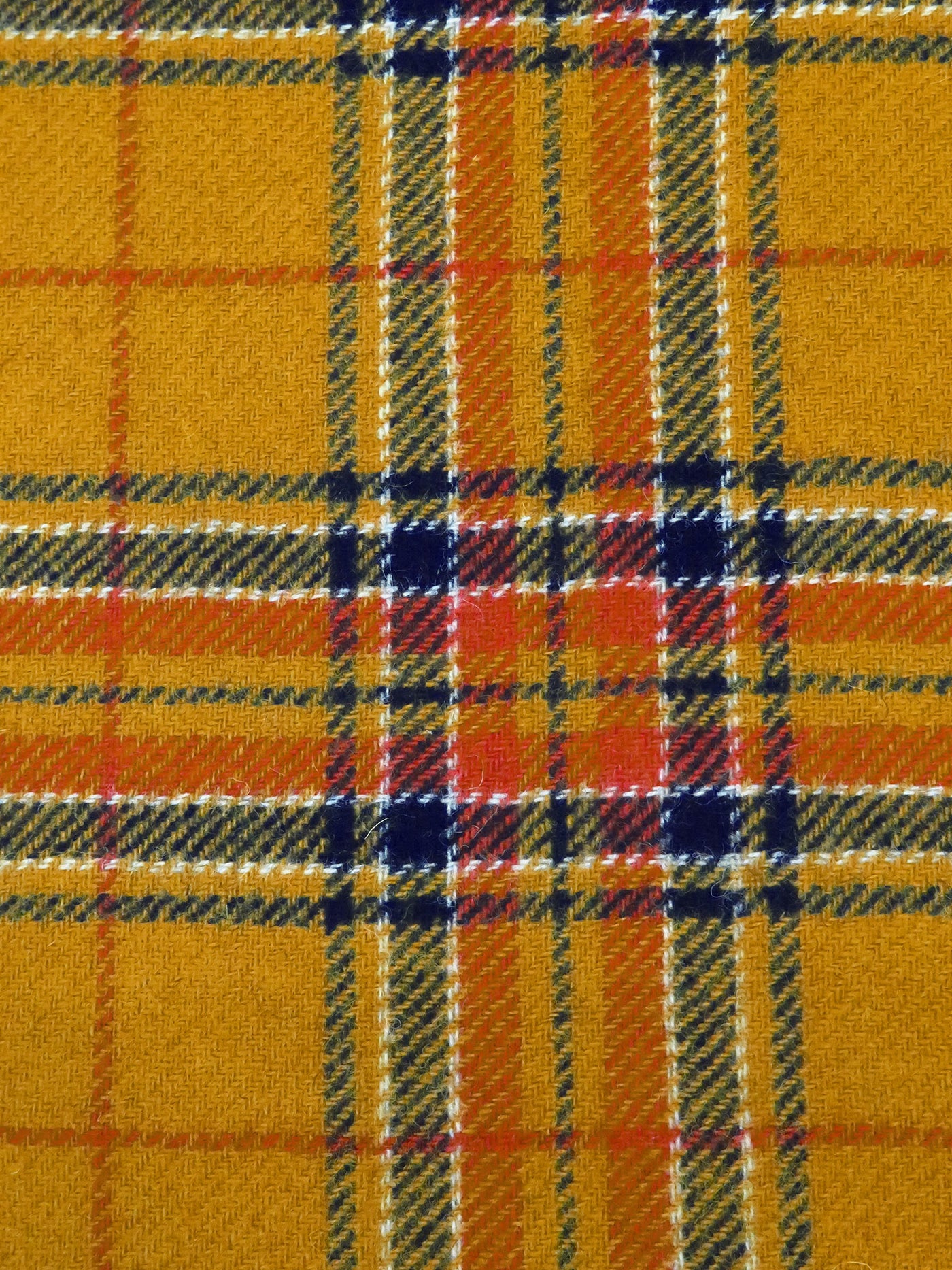 Dark Goldenrod/Midnight Navy/White/Rust 100% Wool Plaid Weave Shetland Coating - Imported From England - 59W
