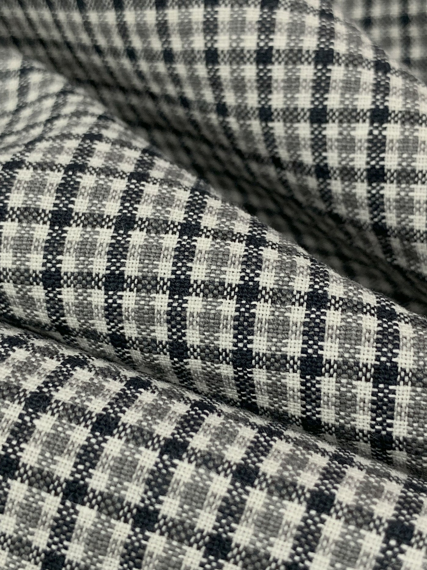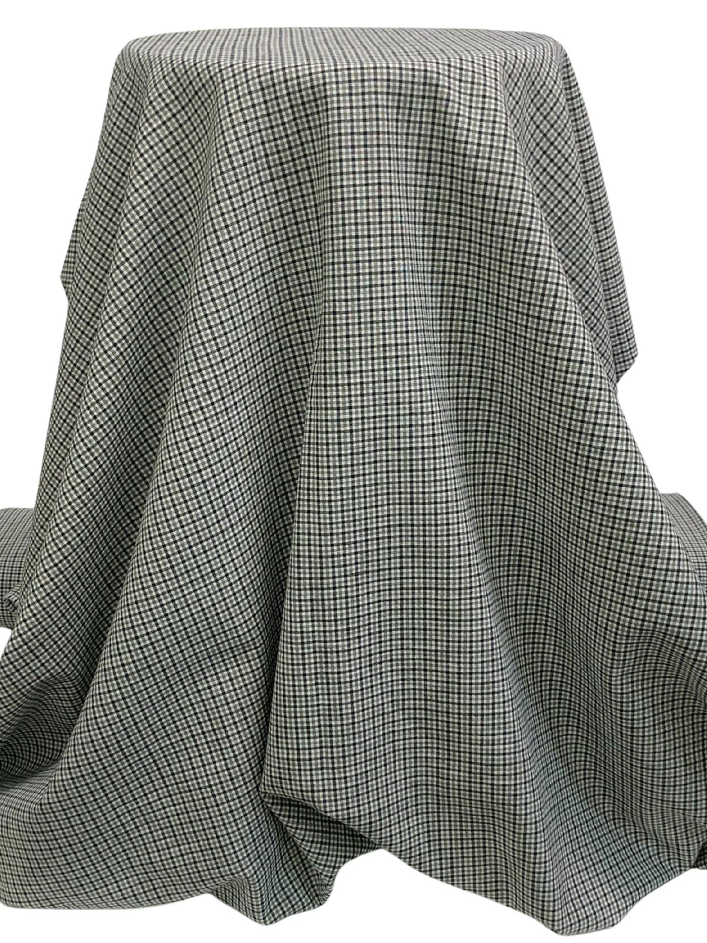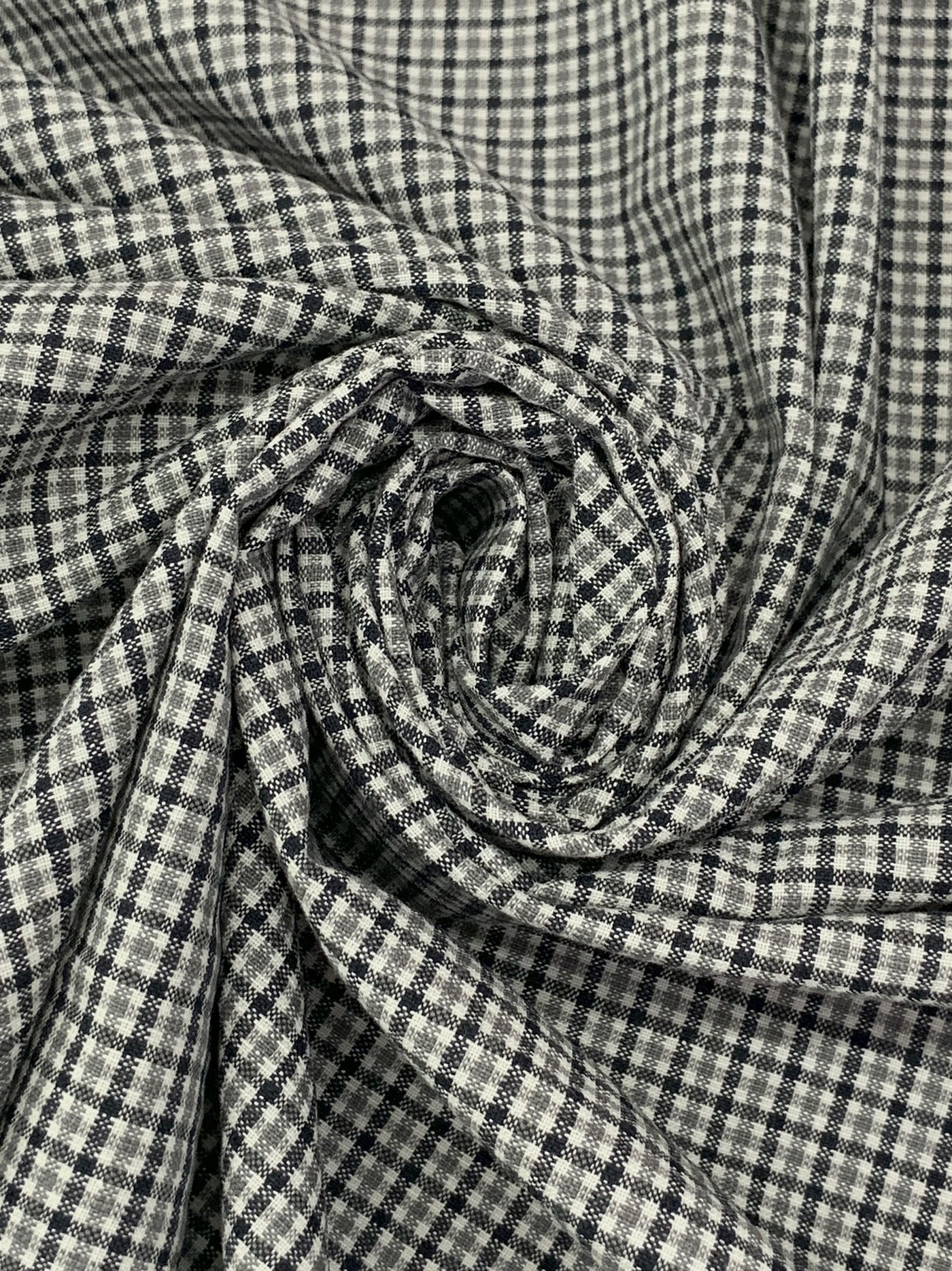 Midnight Ocean Blue/Stone Gray/White Cotton/Polyester/Wool Puckered Plaid Check Suiting 59W