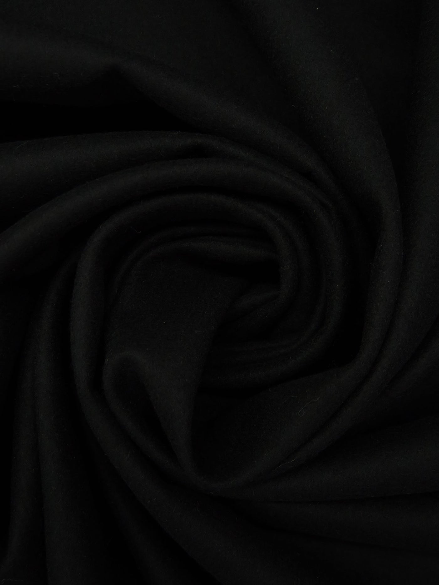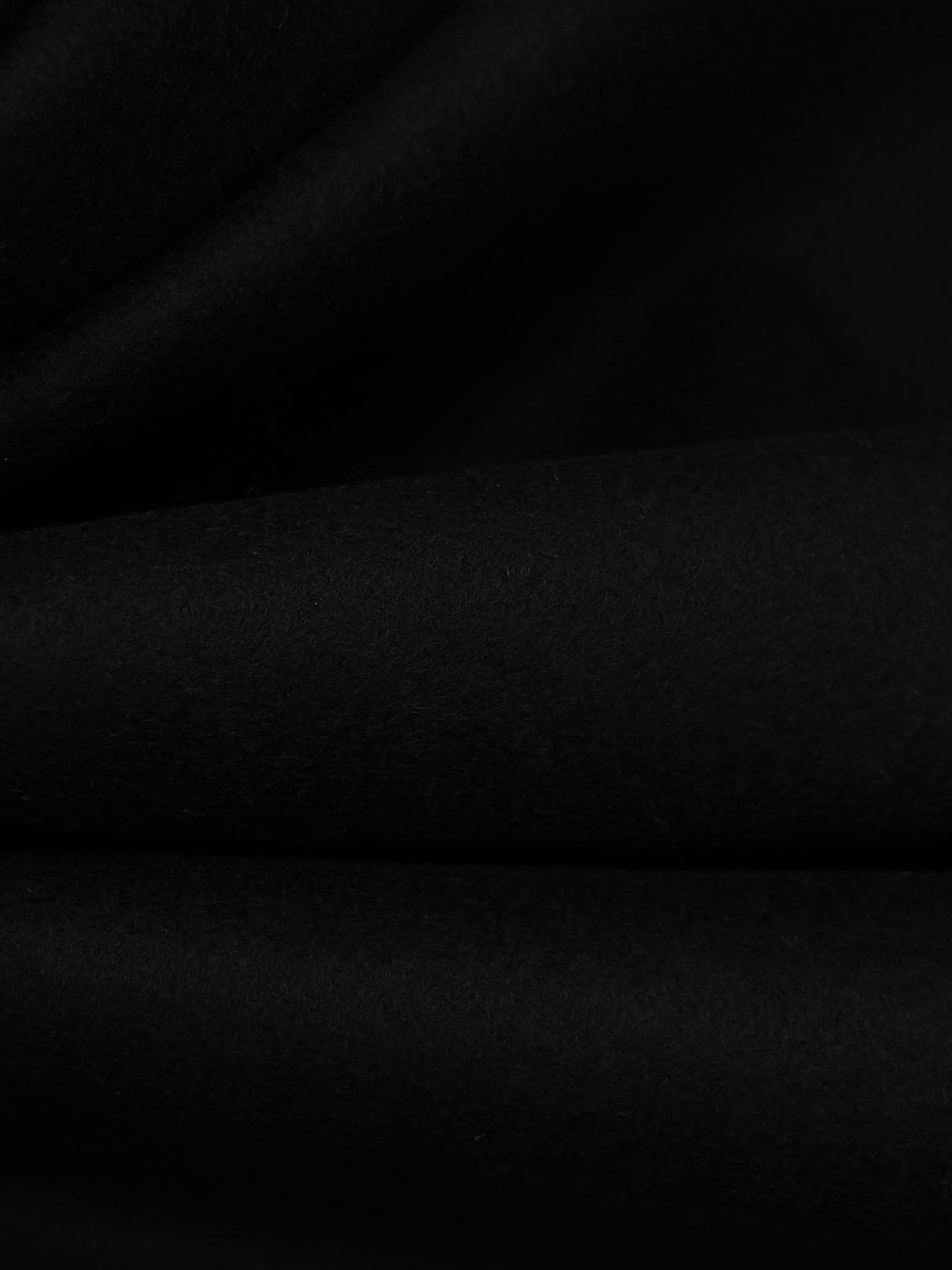 Pitch Black 100% Wool Melton Coating - NY Designer - 60W