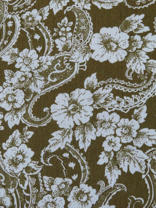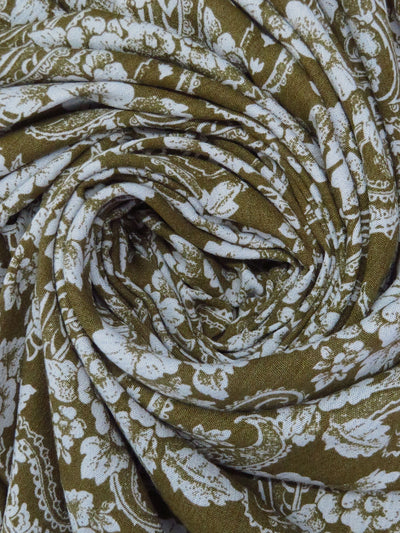 Dark Olive/Light Gray 100% Rayon Floral & Paisley Print Crinkle Challis - Robert Kaufman - 50W