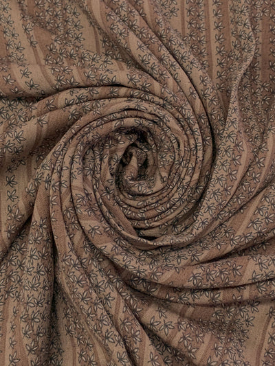 Ash Brown/Brushwood 100% Rayon Vertical Floral Stripe Print Crinkle Challis - Robert Kaufman - 52W