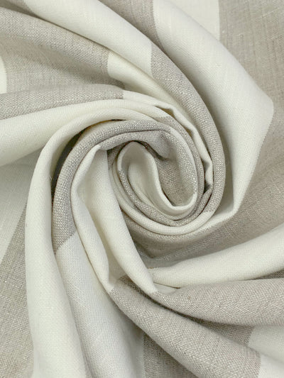 Ash Gray/White Chocolate 100% Linen Vertical Stripe Canvas Suiting 59W