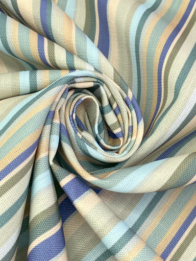 Admiral Blue/Dark Jungle/Light Yellow/Multi 100% Polyester Vertical Stripe Print Canvas 53W