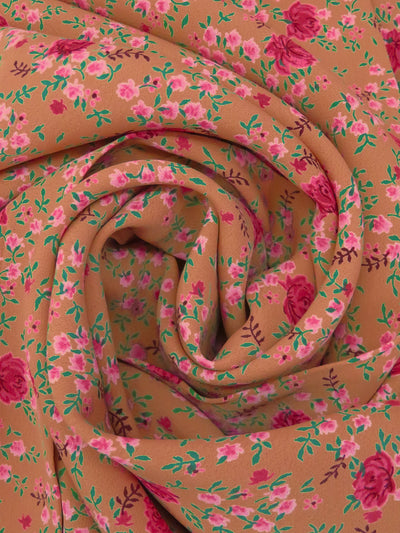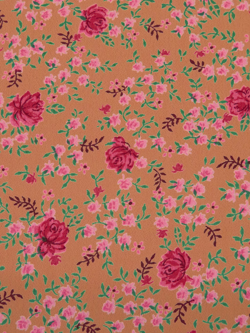 Burnt Copper/Cadmium Green/Candy Pink/Multi 100% Rayon Small Floral Print Crepe Blouse Weight Woven 42W