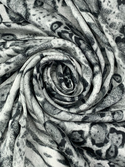 Bone/Dark Slate Gray/Black 100% Polyester Animal Print Satin-Faced Chiffon - Famous Dress Designer - 57W