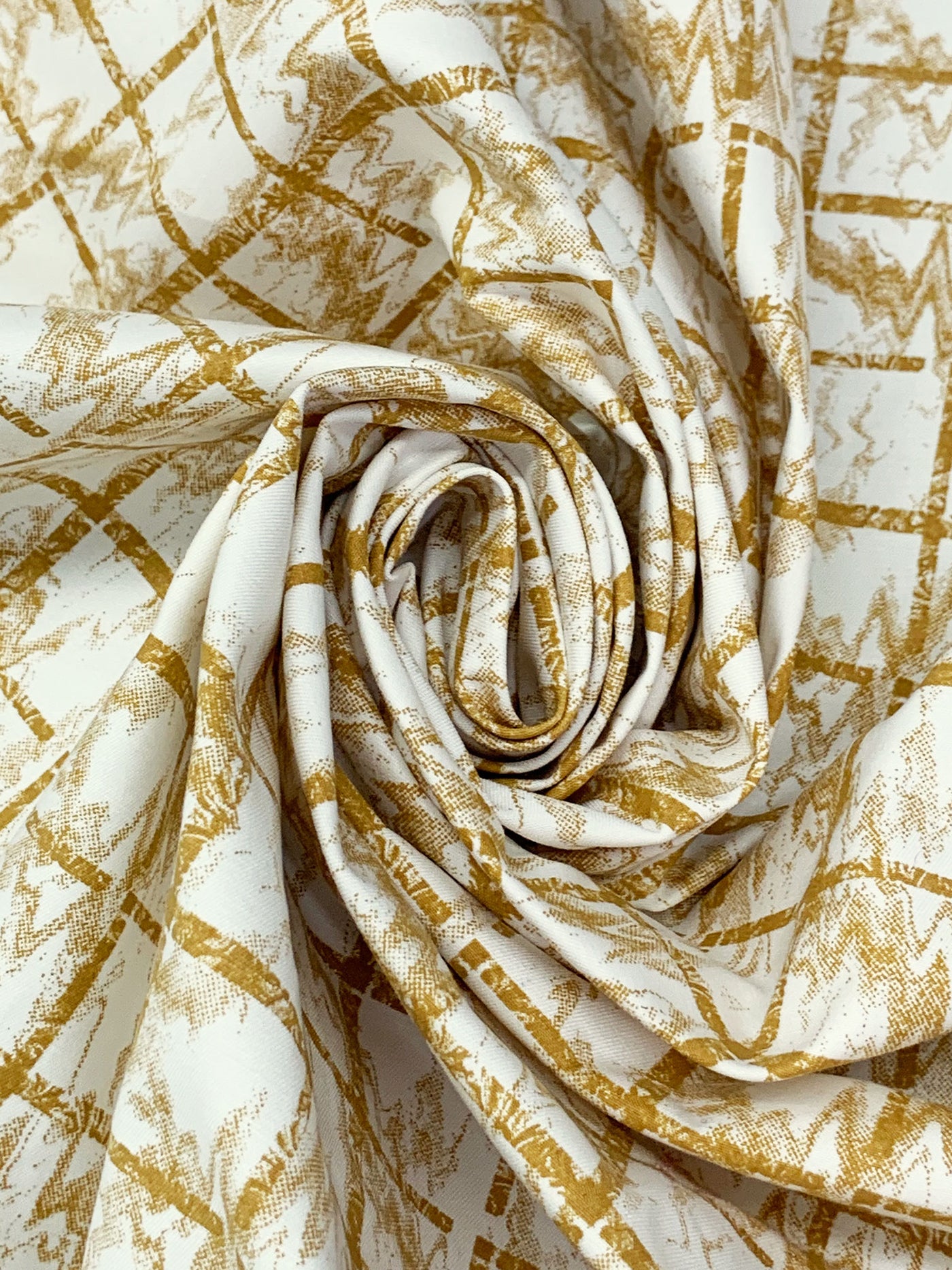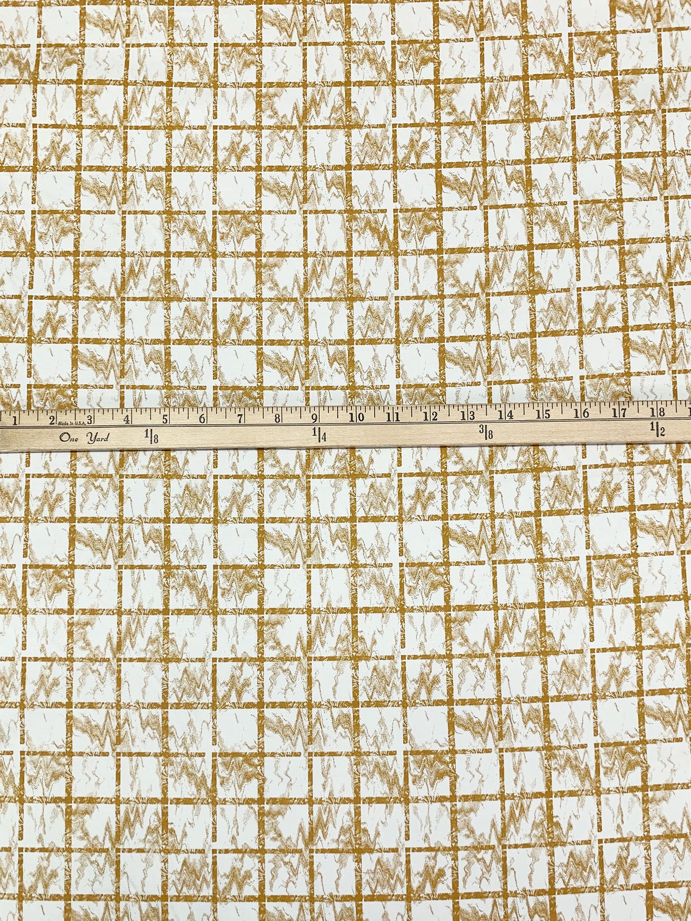 Golden Brown/Off-White Cotton/Lycra Warped Grid Print Stretch Sateen Bottom Weight Woven 52W