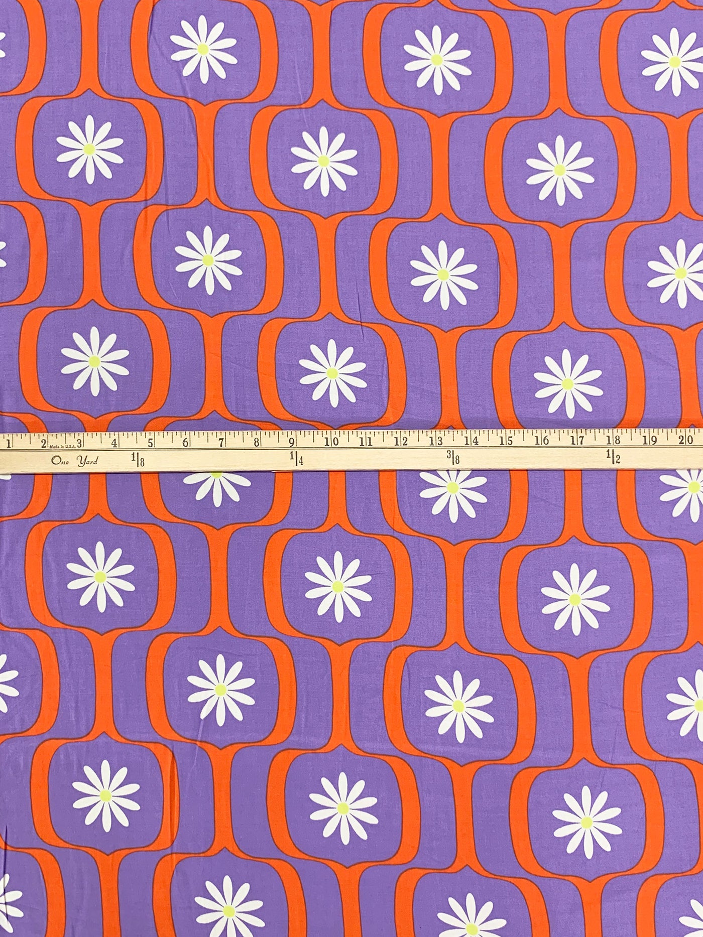 Lavender/Flame/White 100% Rayon Daisy Ogee Print Challis 55W