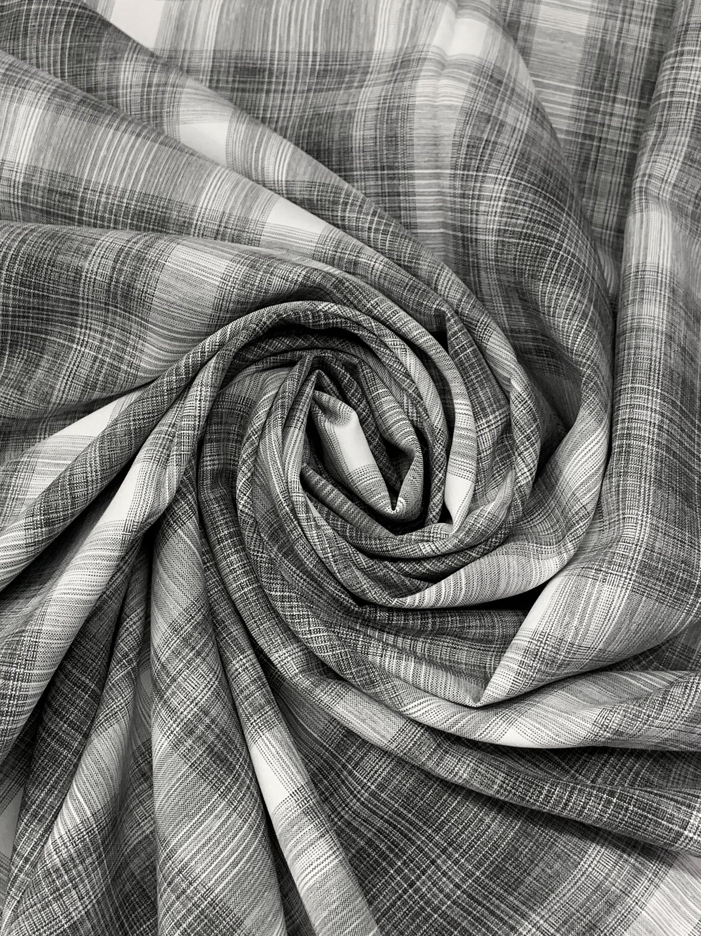 Steel/White/Black 100% Polyester Plaid Teton Performance Woven Shirting - Robert Kaufman - 56W
