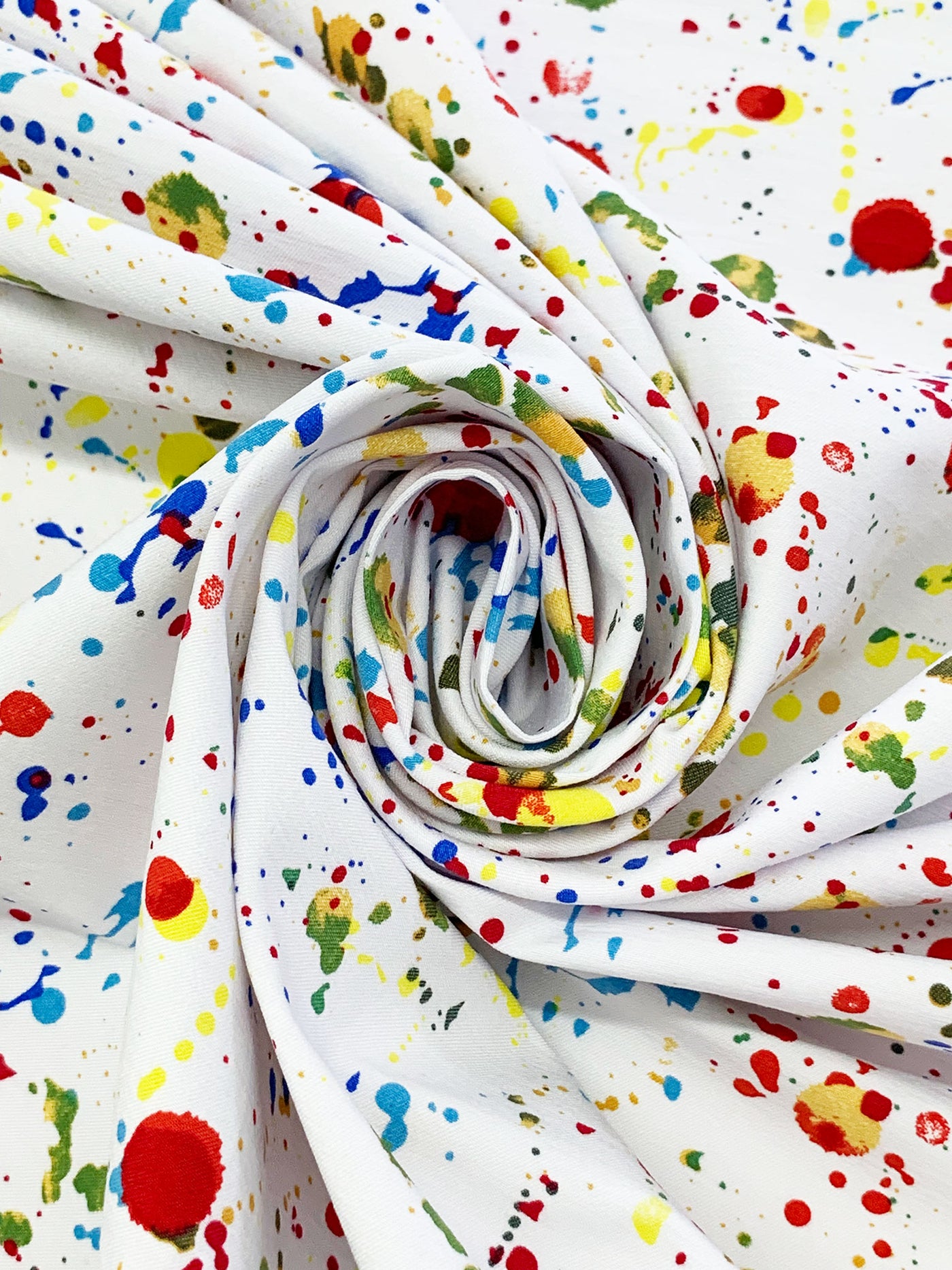 White/Yellow/Blue/Multi Rayon/Nylon/Lycra Paint Splatter Print Stretch Bengaline Suiting 57W