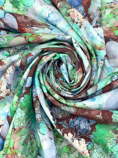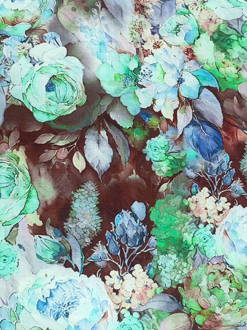 Coffee/Lapis Blue/Sea Green/Multi 100% Rayon Floral Print Challis 57W
