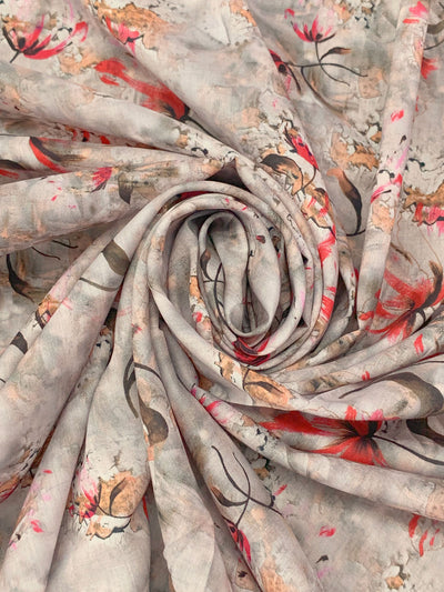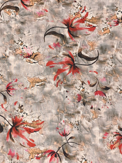 Silver Dollar/Burnt Red/Multi 100% Rayon Abstract Floral Print Challis 56W