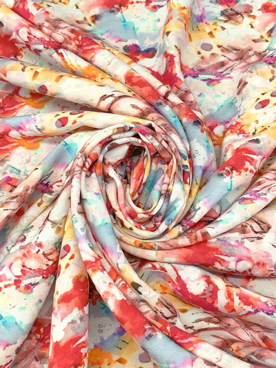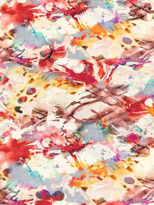 Strawberry Red/Soft Blue/White/Multi 100% Rayon Abstract Print Challis 58W