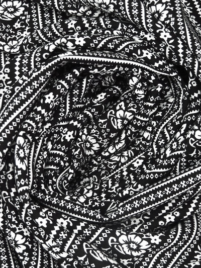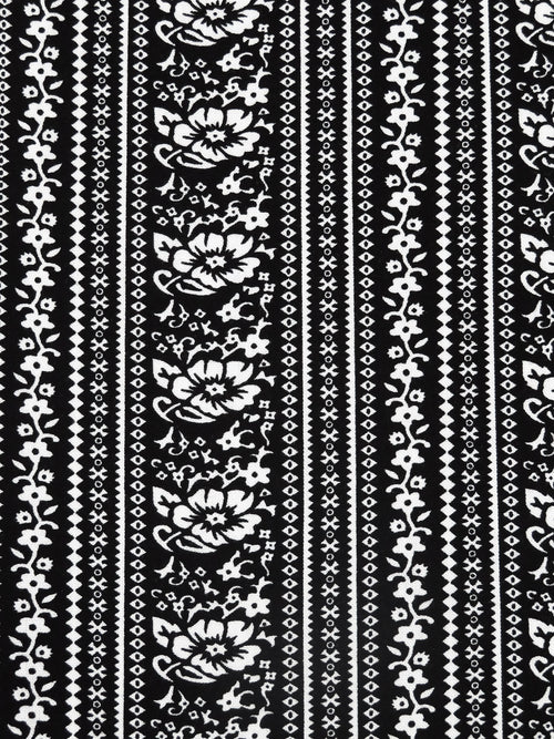 Black/White 100% Rayon Floral Stripe Print Challis 54W