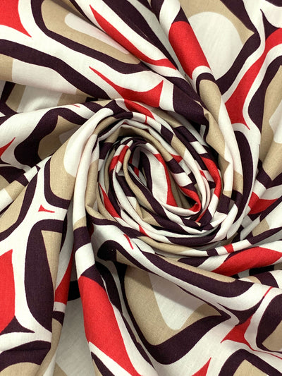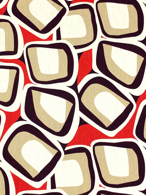 Persian Red/Eggshell/Black/Soft Tan 100% Cotton Abstract Geometric Print Lawn 57W