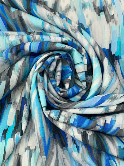 True Blue/White/Black/Multi 100% Rayon Vertical Streaks Print Challis 58W