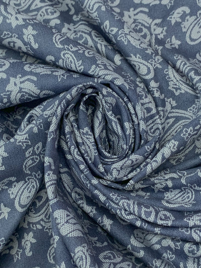 Dark Imperial Blue/Cadet Gray 100% Cotton Paisley Print Lawn 57W