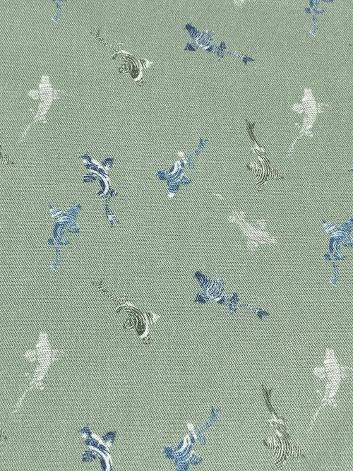 Laurel Green/Dark Electric Blue/White 100% Cotton Abstract Marine Life Print Lawn 57W