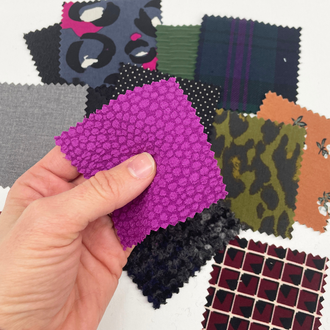 Julie's Picks is a membership-only fabric swatch club. Every month you will receive 30 different fabric swatches to guide you in creating fashion forward, handmade garments. Touching and feeling fabric before you buy it is the ultimate shopping experience and online shopping doesn’t really allow for that. That’s why we created Julie’s Picks Swatch Club, so you have the best of both worlds!