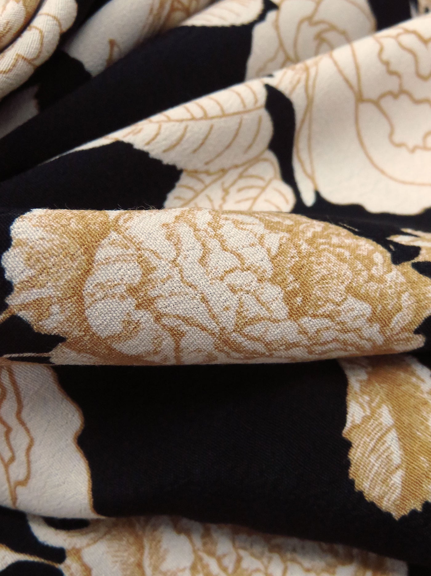 Camel/Off-White/Black 100% Rayon Drawn Floral Print Crepe Challis - NY Designer - 56W