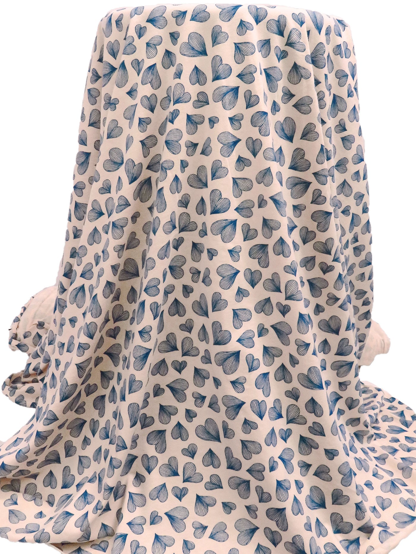 Champagne Pink/Dark Cetacean Blue 100% Cotton Hearts Print Jersey Knit 56W