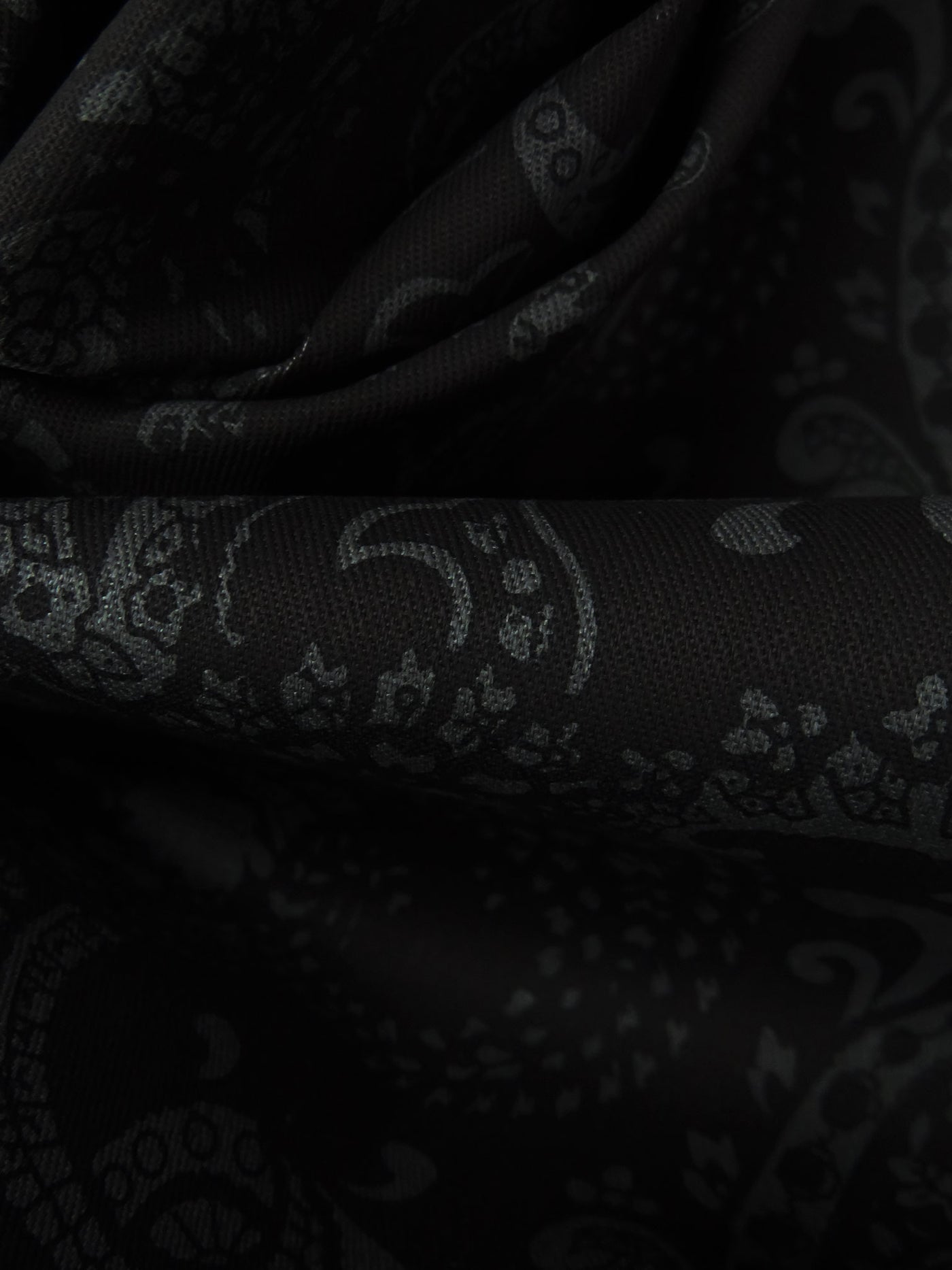 Dark Gray/Black Cotton/Lycra Paisley Print Stretch Twill 50W