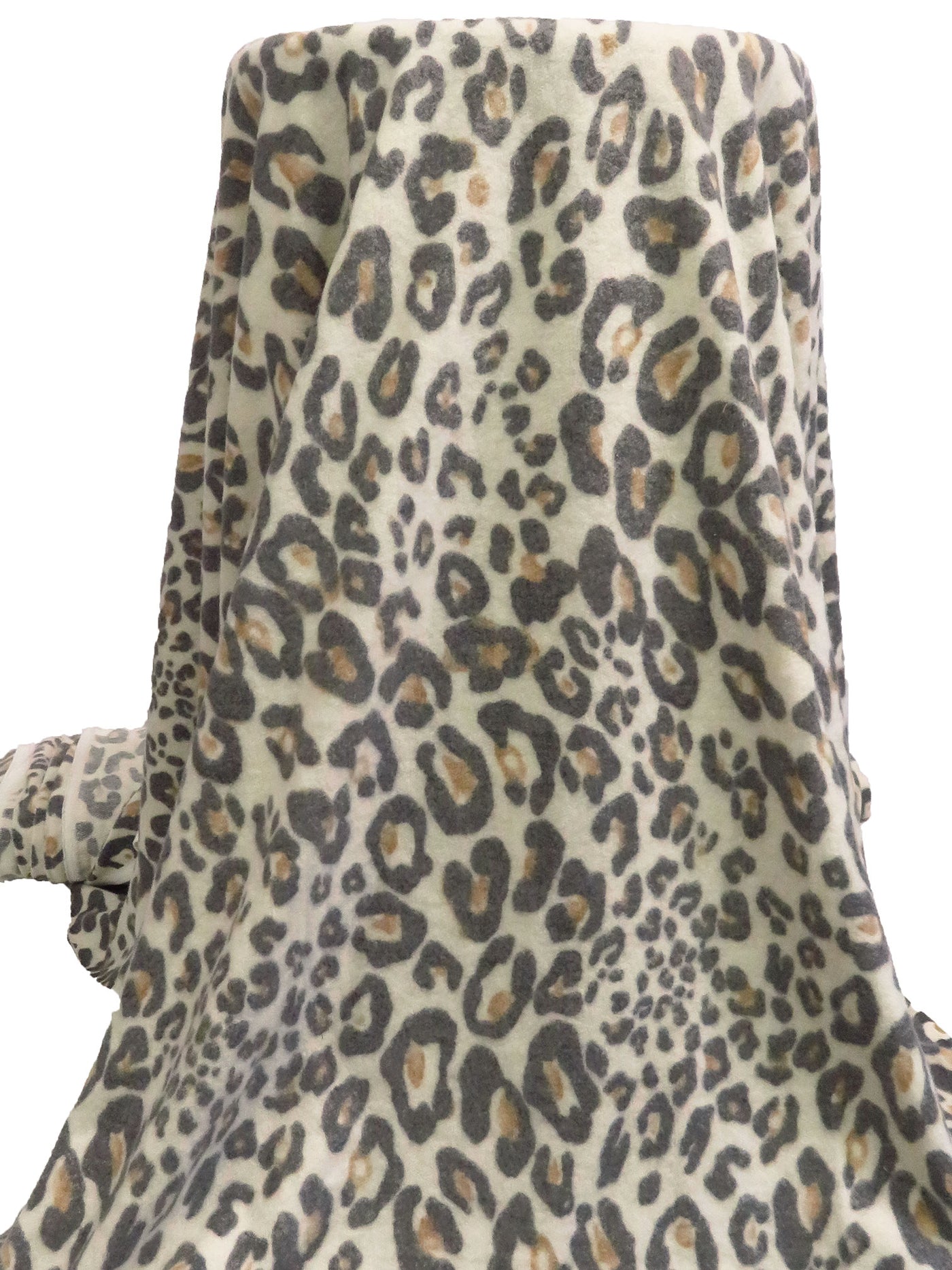 White/Charcoal/Fawn Polyester/Lycra Animal Print Brushed French Terry Knit 56W