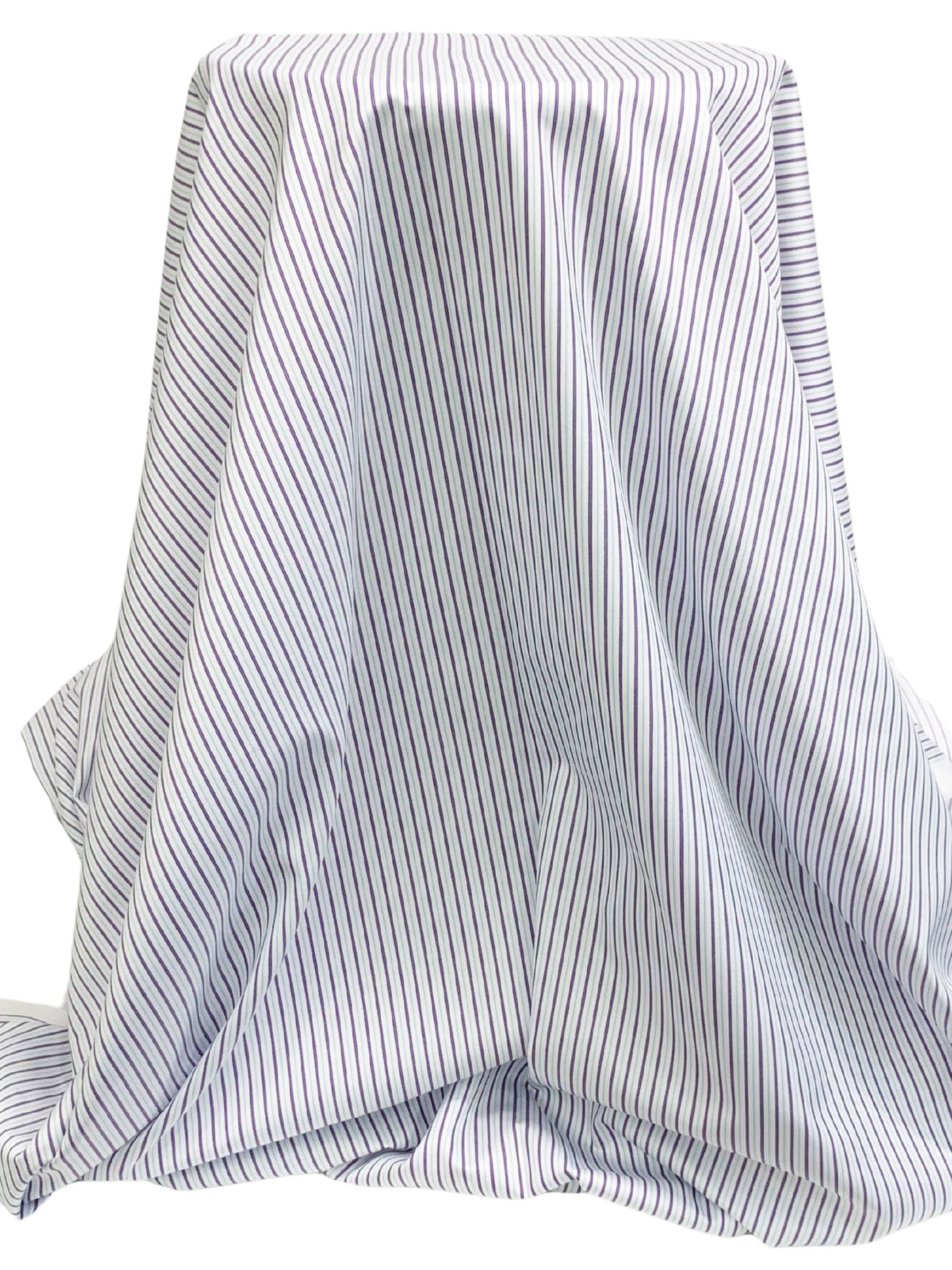 White/French Lilac/Baby Blue 100% Cotton Vertical Stripe Weave Shirting 50W